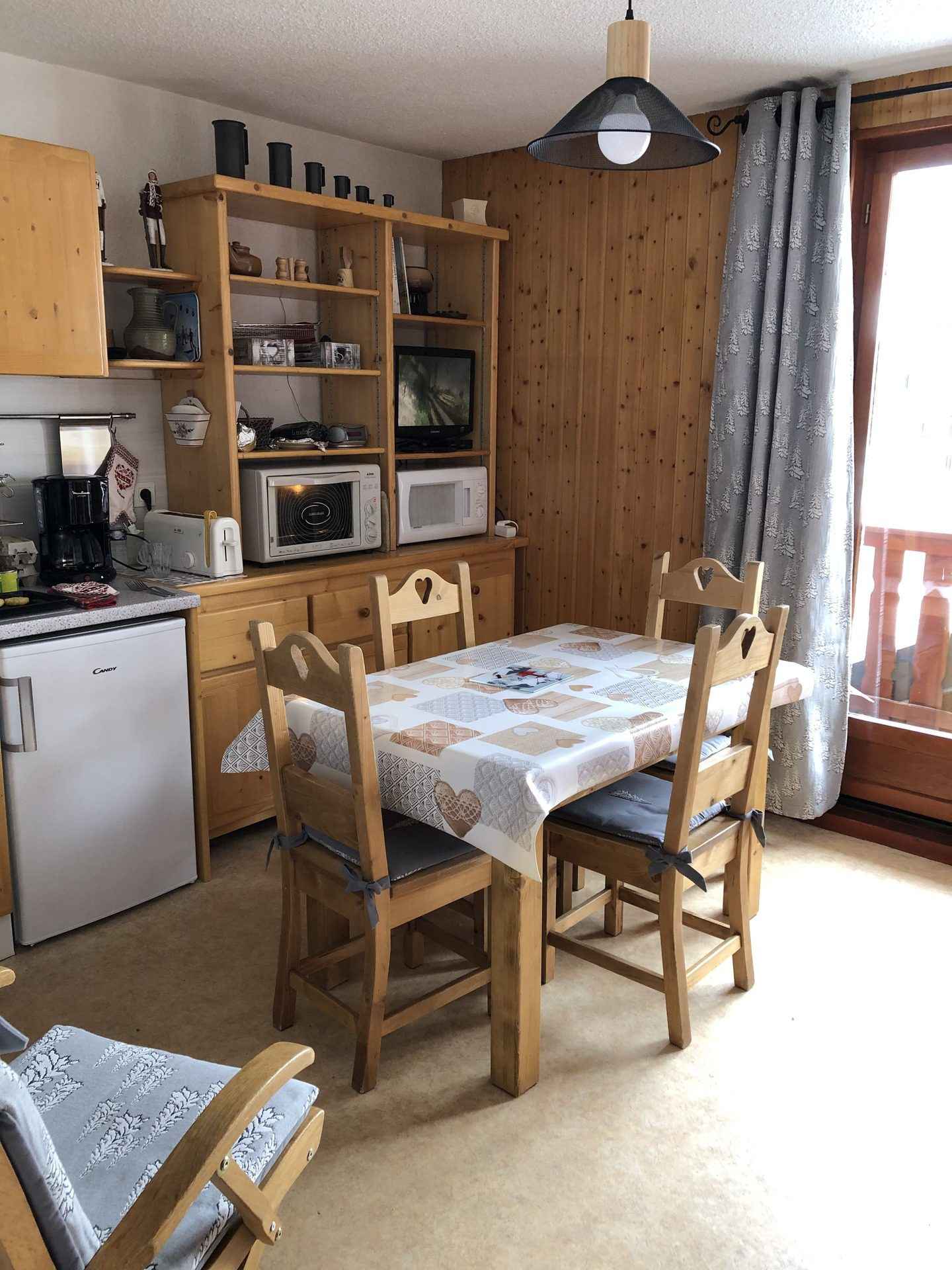 lave-linge. - Coin salon : télévision Salle d'eau : lavabo, douche, sèche-cheveux et WC. SERVICES/OBSERVATIONS : UN animal accepté (à condition qu'il ne reste pas seul dans l'appartement). Linge de lit et de toilette non fournis. Ménage de fin de séjour non inclus. Casier à skis. Balcon (3m²/ Sud-Ouest). Parking collectif non privatif. 2 CAUTIONS : 250 € (en cas de dégâts) + 60 € (en cas de ménage non fait).