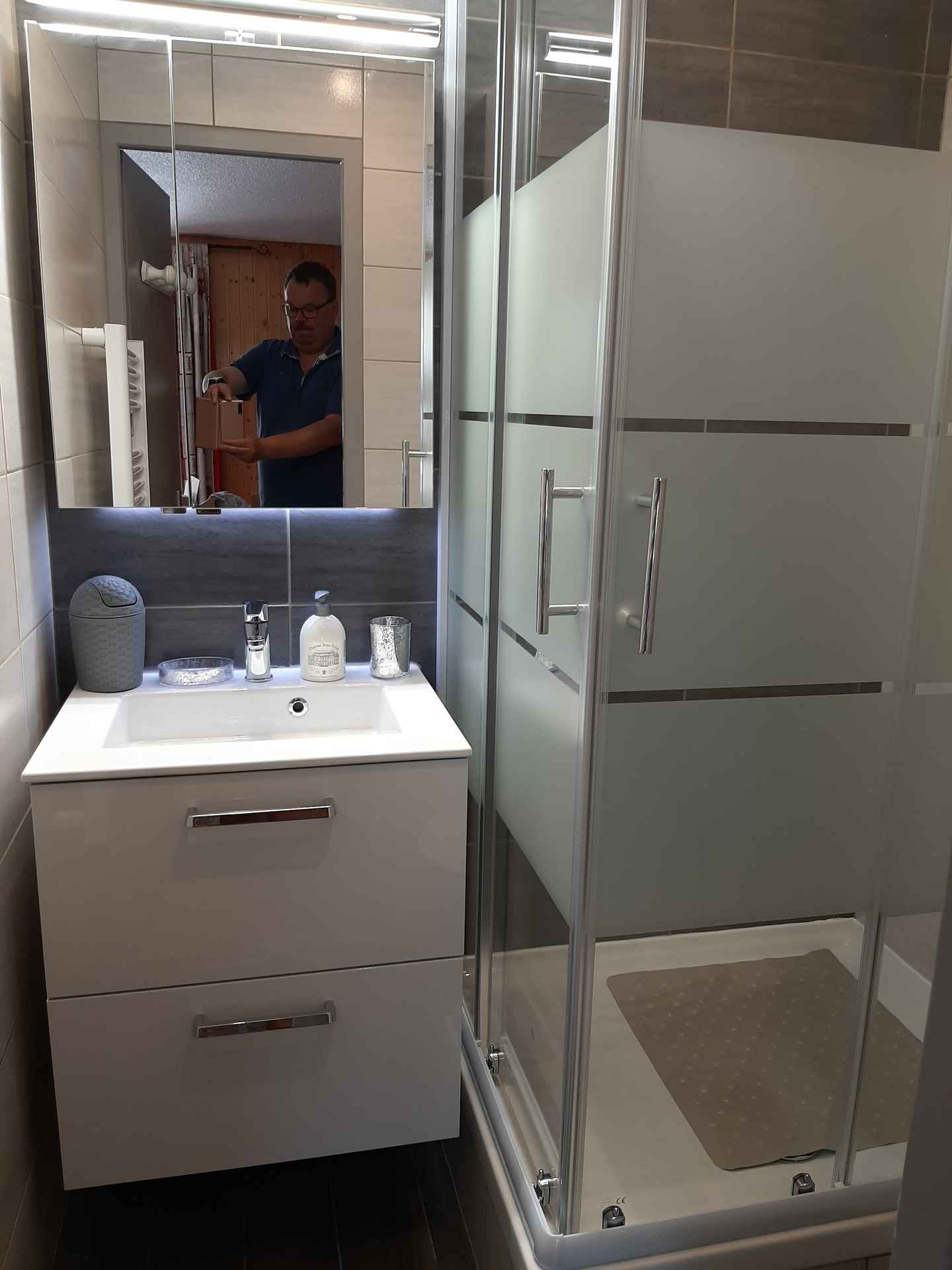 - coin cuisine : mini-four, four micro-ondes, plaques vitrocéramiques (2 foyers), lave-vaisselle, réfrigérateur avec compartiment congélateur,