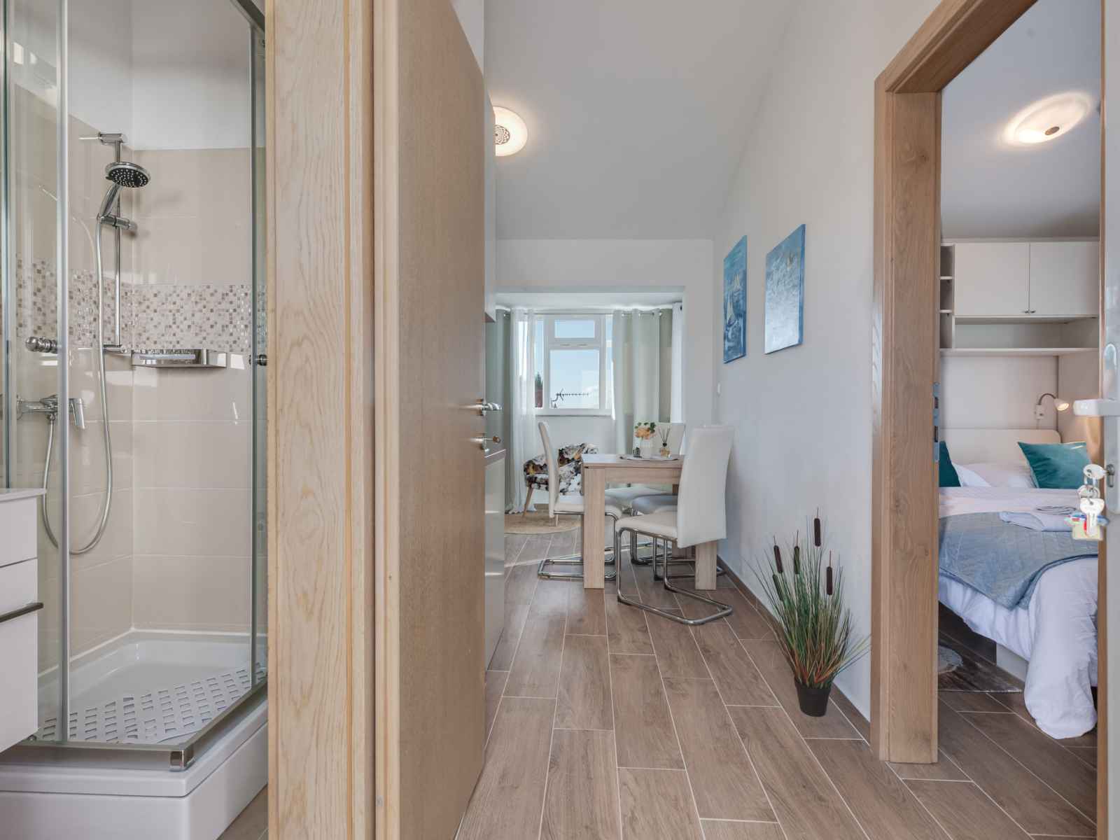 Immeuble "tramonto". À 3.5 km du centre de vir, situation ensoleillée, à 20 m de la mer, à 20 m de la plage. en commun: terrain 600 m2, arbres. infrastructures de la maison: restaurant, accès internet. place de parking près de la maison sur le terrain. magasins 600 m, supermarché 1.1 km, arrêt de bus 4.4 km, plage de graviers 20 m.