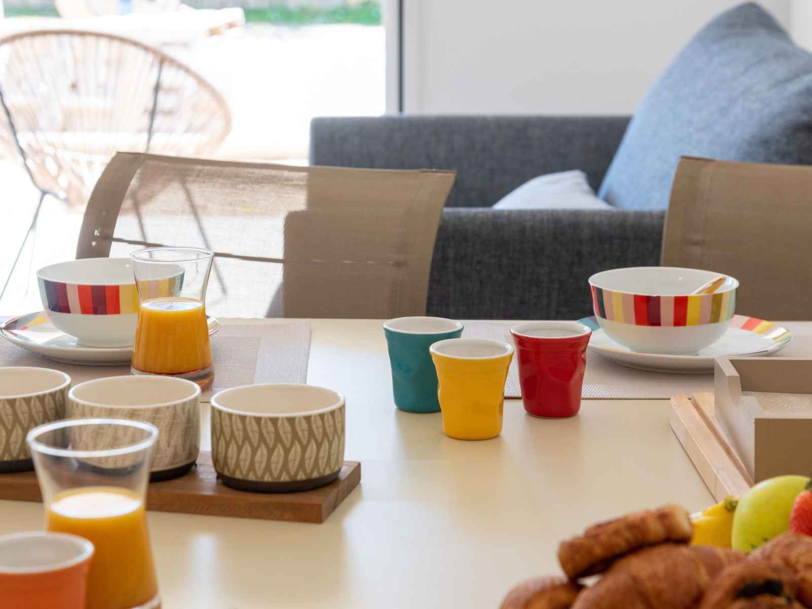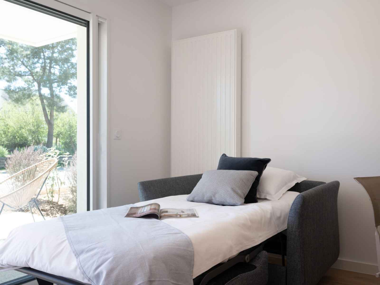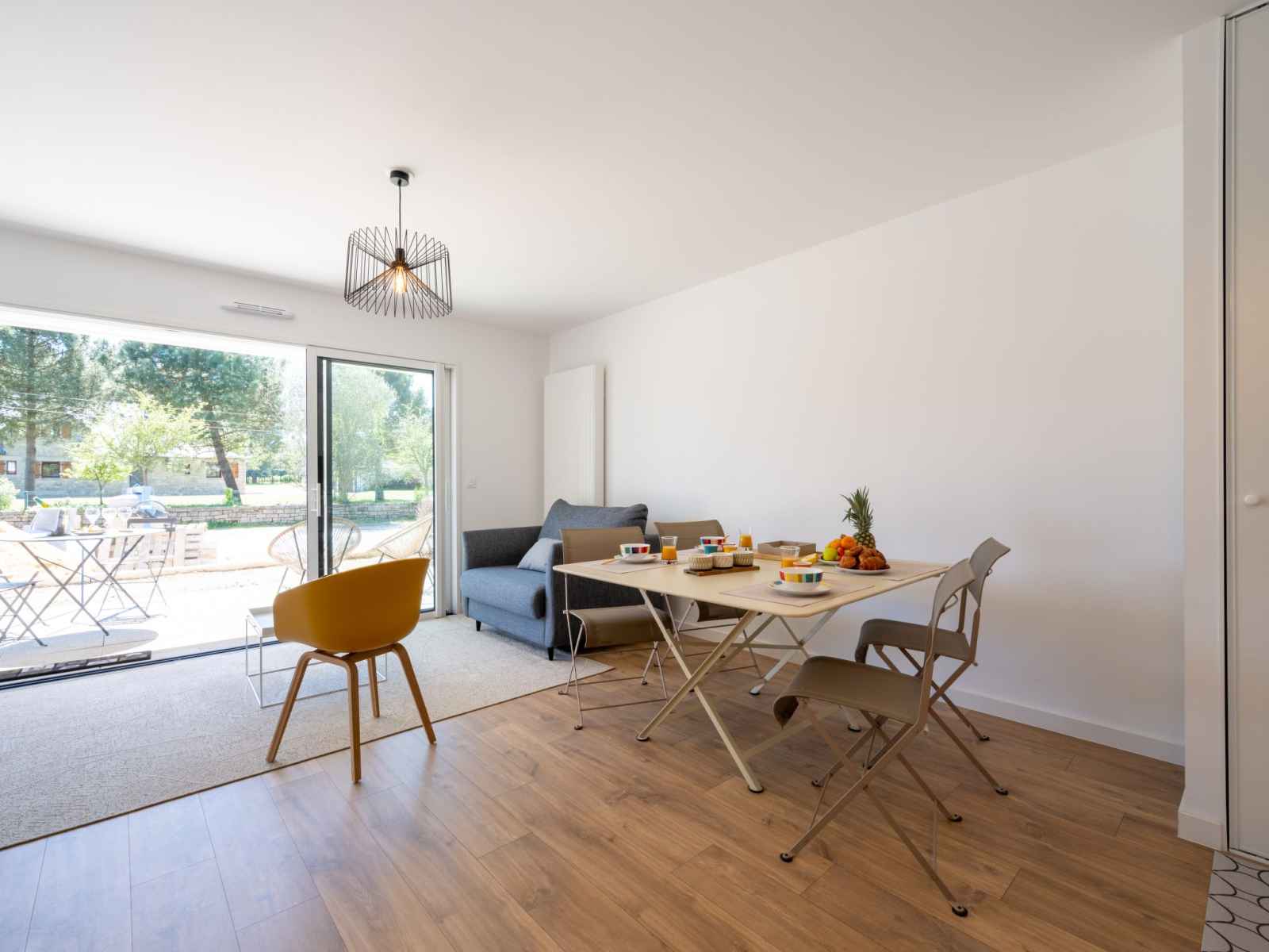 2-room apartment 48 m2, on the ground floor, south facing position. spacious, very comfortable and modern furnishings: living/dining room with 1 sofabed (80 cm, length 190 cm), tv (flat screen). exit to the terrace, to the patio. 1 room with 2 beds (90 cm, length 200 cm). open kitchen (oven, dishwasher, 3 induction hot plates, toaster, kettle,