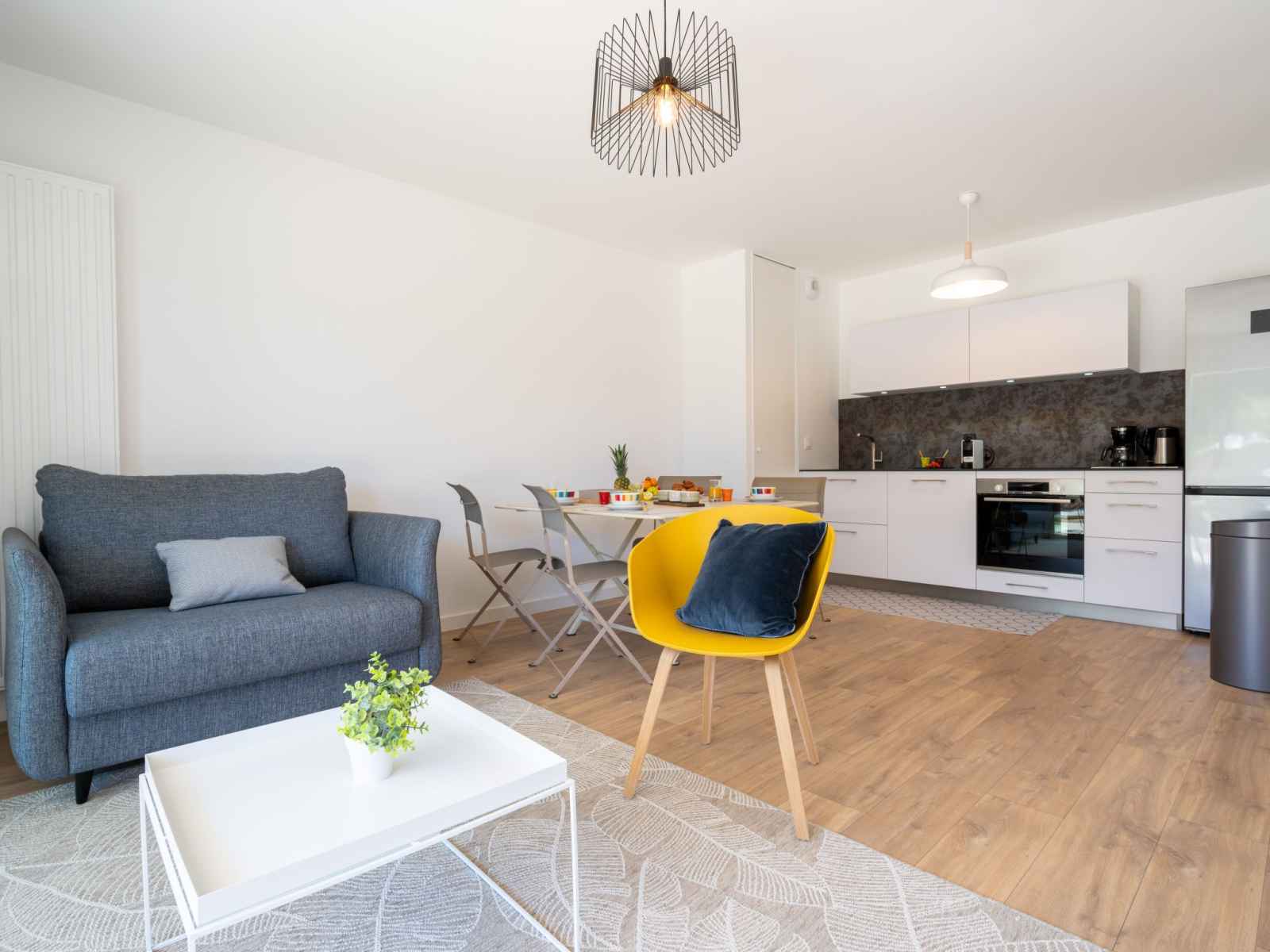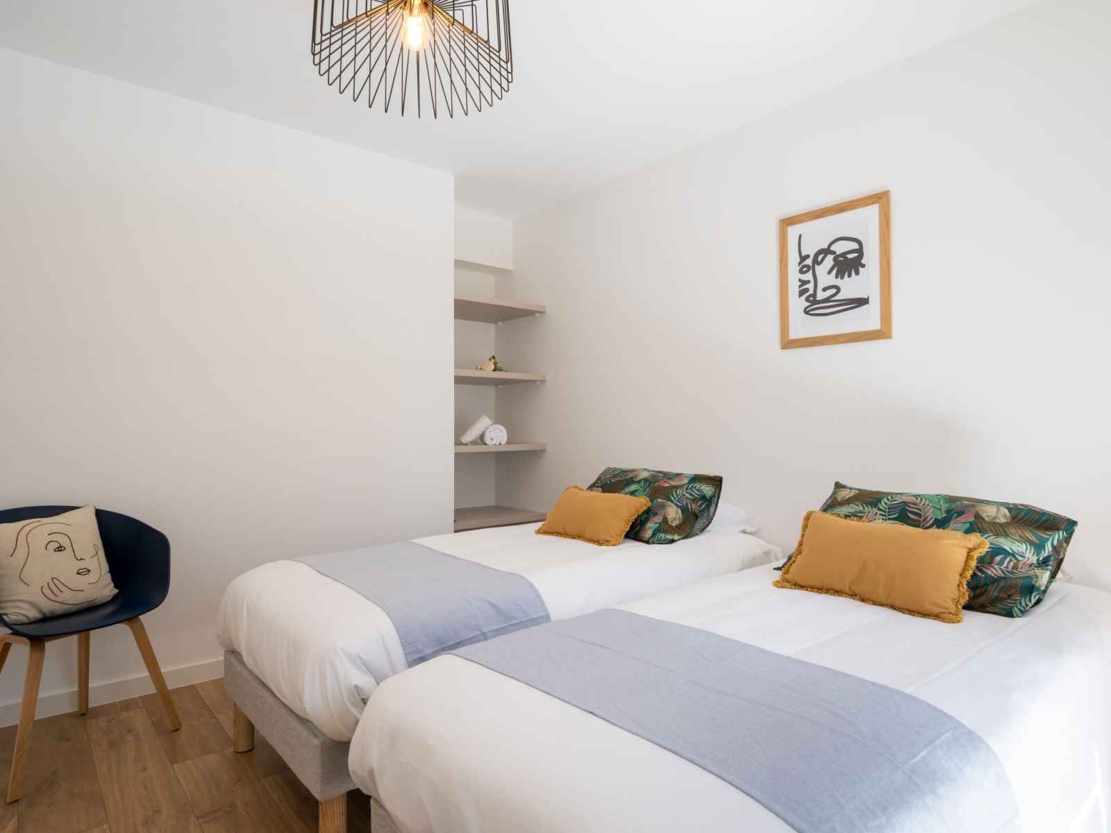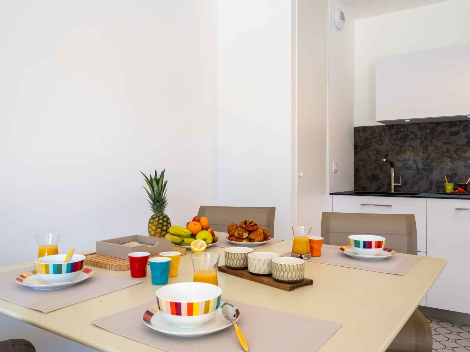2-room apartment 48 m2, on the ground floor, south facing position. spacious, very comfortable and modern furnishings: living/dining room with 1 sofabed (80 cm, length 190 cm), tv (flat screen). exit to the terrace, to the patio. 1 room with 2 beds (90 cm, length 200 cm). open kitchen (oven, dishwasher, 3 induction hot plates, toaster, kettle,