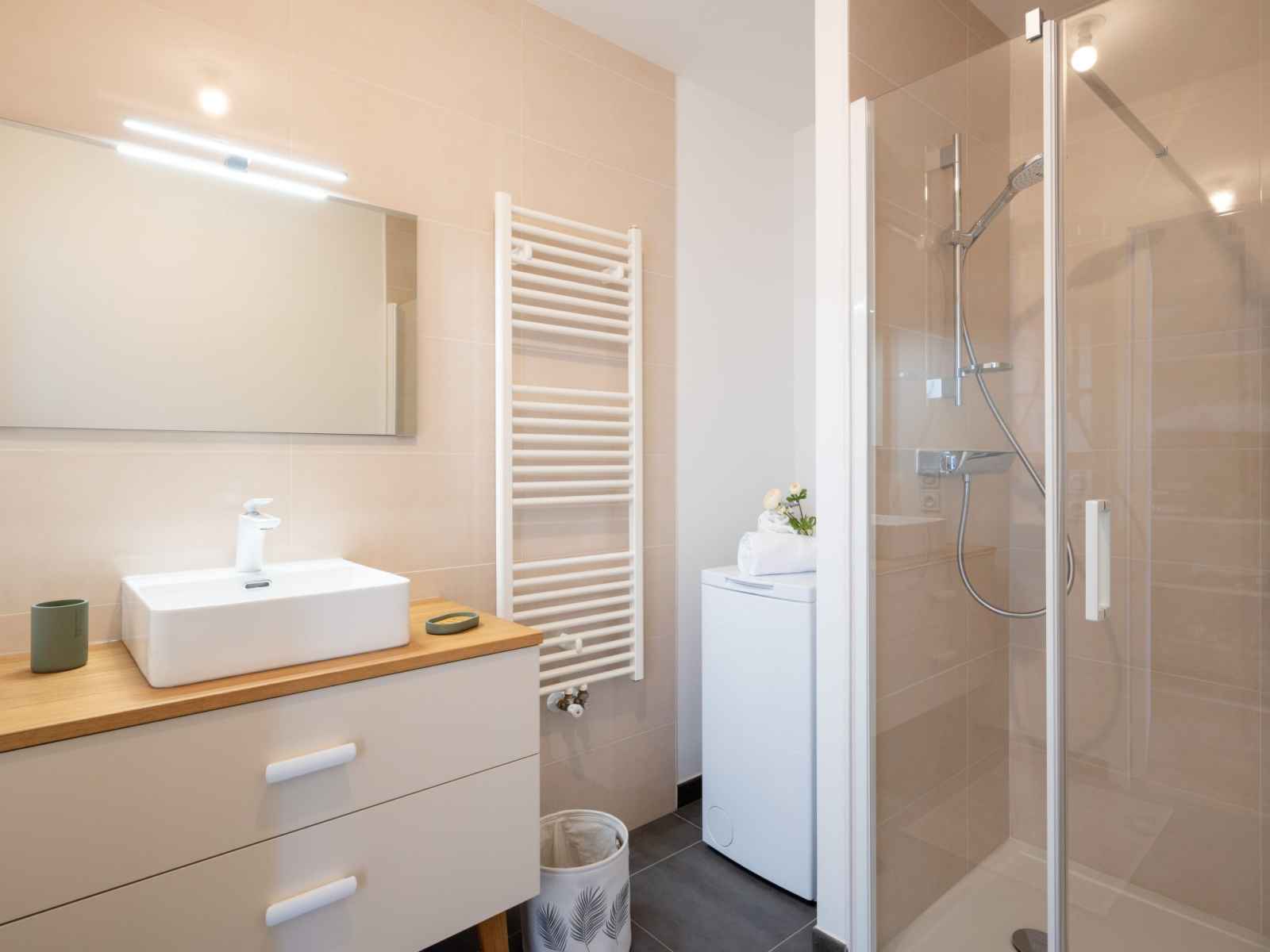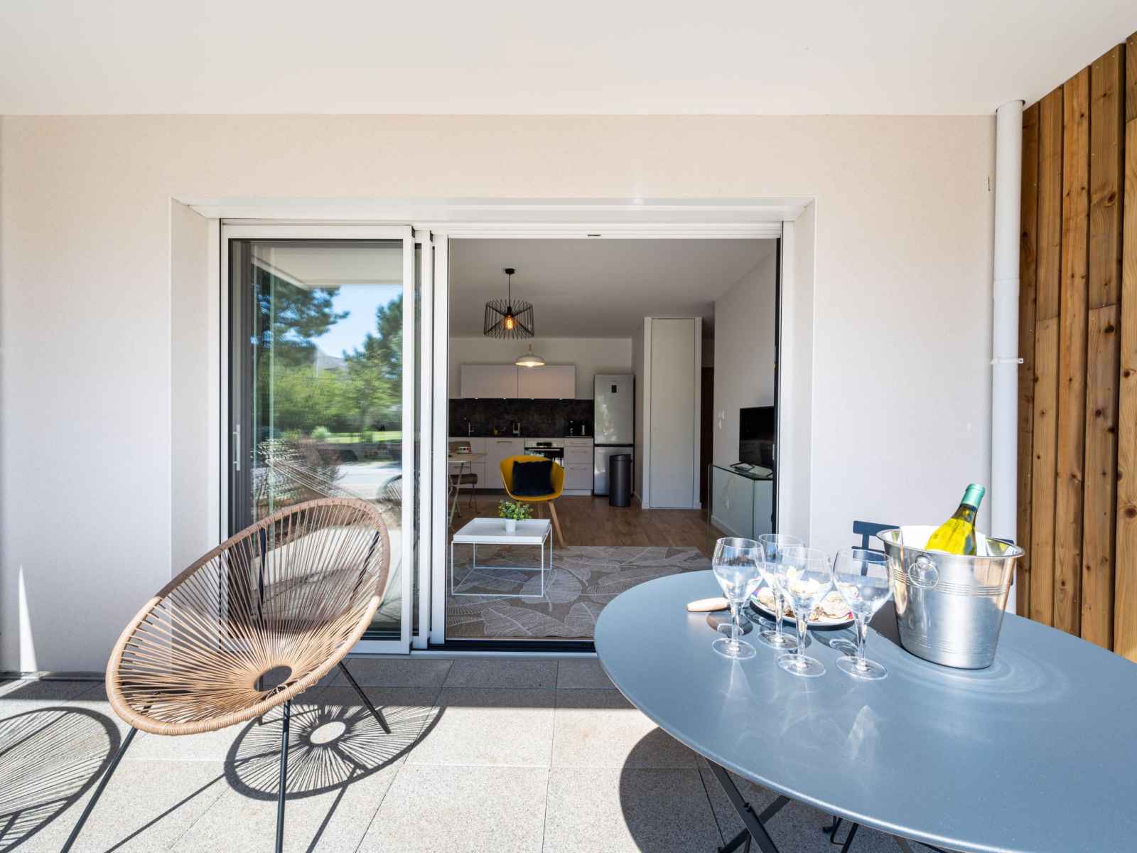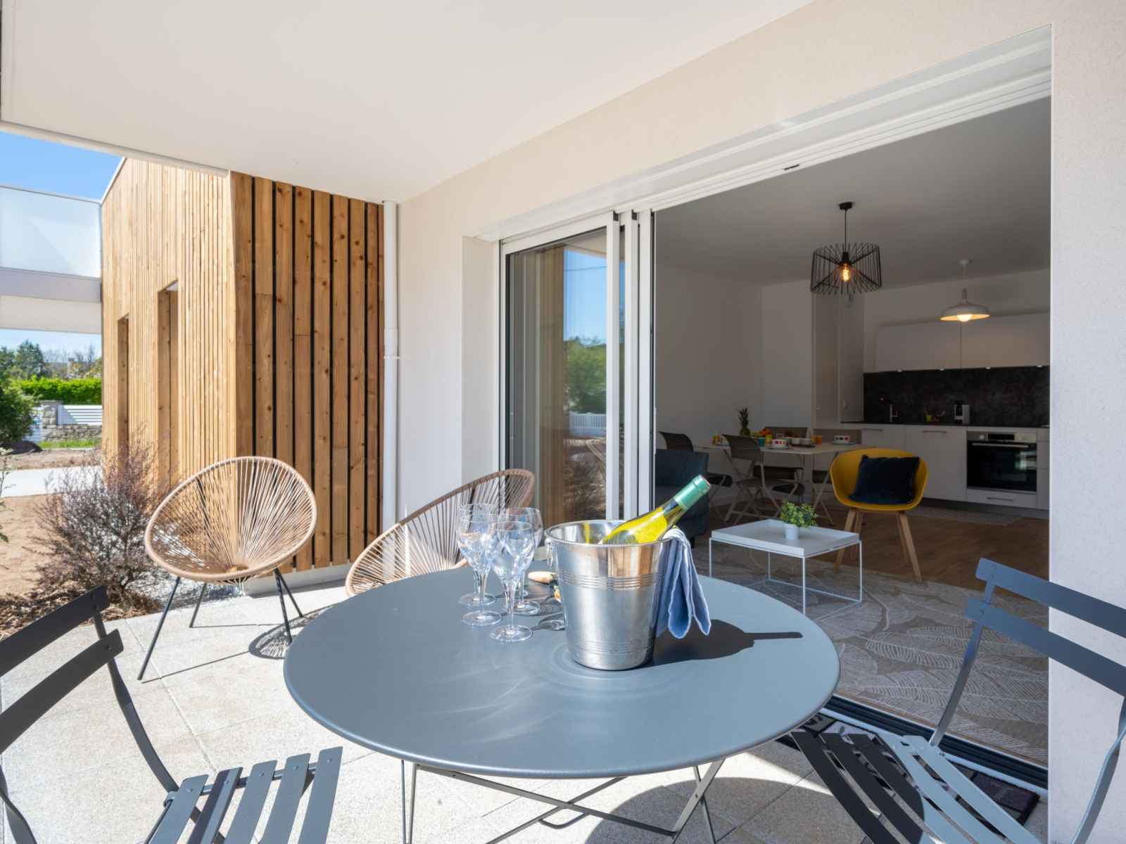 Modern, comfortable apartment block "hemisphère", 2 storeys, built in 2022. 1.2 km from the sea, 1.2 km from the beach. shop 500 m, supermarket, bakery 500 m, sandy beach "grande plage de carnac" 1.2 km, park "cézarine" 50 m, thermal baths "thalassothérapie thalazur" 2 km. golf course (18 hole) 15 km, surf school 6 km, sailing school 2 km.
