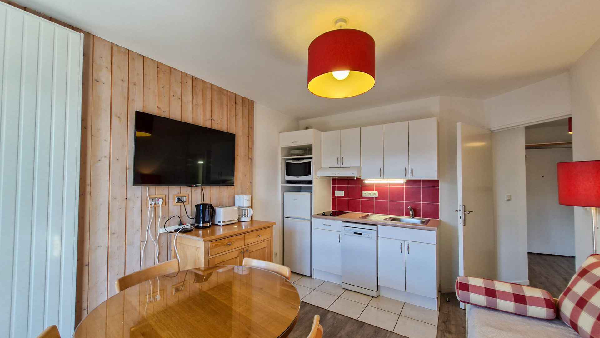 and microwave and dishwasher - Large balcony with a table, 4 chairs and 2 deckchairs - Ski locker - Suitable for disabled guests and wheelchairs - Laundry in the residence - No smoking apartment - Pets accepted with extra charge - Wooden floor, bathroom and kitchen with tiled floor - Bedding: duvets Included: Bed linen, towels, tea towels and welcome pack Optional: - During the winter season: Possibility to book a covered parking place in residence LES PLEIADES with extra charge (please contact our agency) - During the summer season: the covered parking place is included - Wifi access in the apartment with extra charge - Optional end-of-stay cleaning (additional charge) -Included in the summer season (for any stay of 6 nights or more): the "Flaine summer pass" including many activities