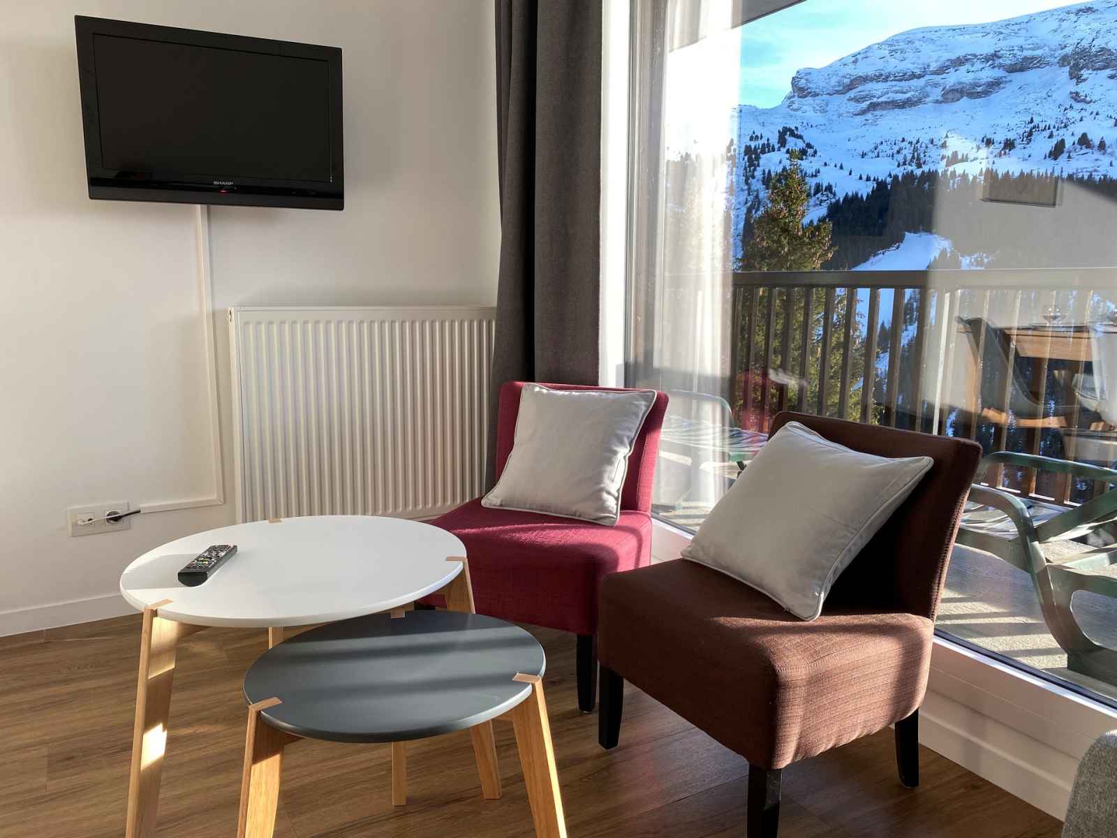 room - Separate toilet - Kitchen with induction hob, fridge,oven, microwave and dishwasher - Ski locker - Balcony with table and chairs - Laundry in the residence - No smoking apartment - Pets accepted with extra charge - Soft flooring - Bedding: duvets Included: Towels, bed linen, tea towels and welcome pack Optional: - Covered parking space in the residence (booking in advance and wih extra charge) - Wifi access in the apartment (with extra charge) -Included in the summer season (for any stay of 6 nights or more): the "Flaine summer pass" including many activities