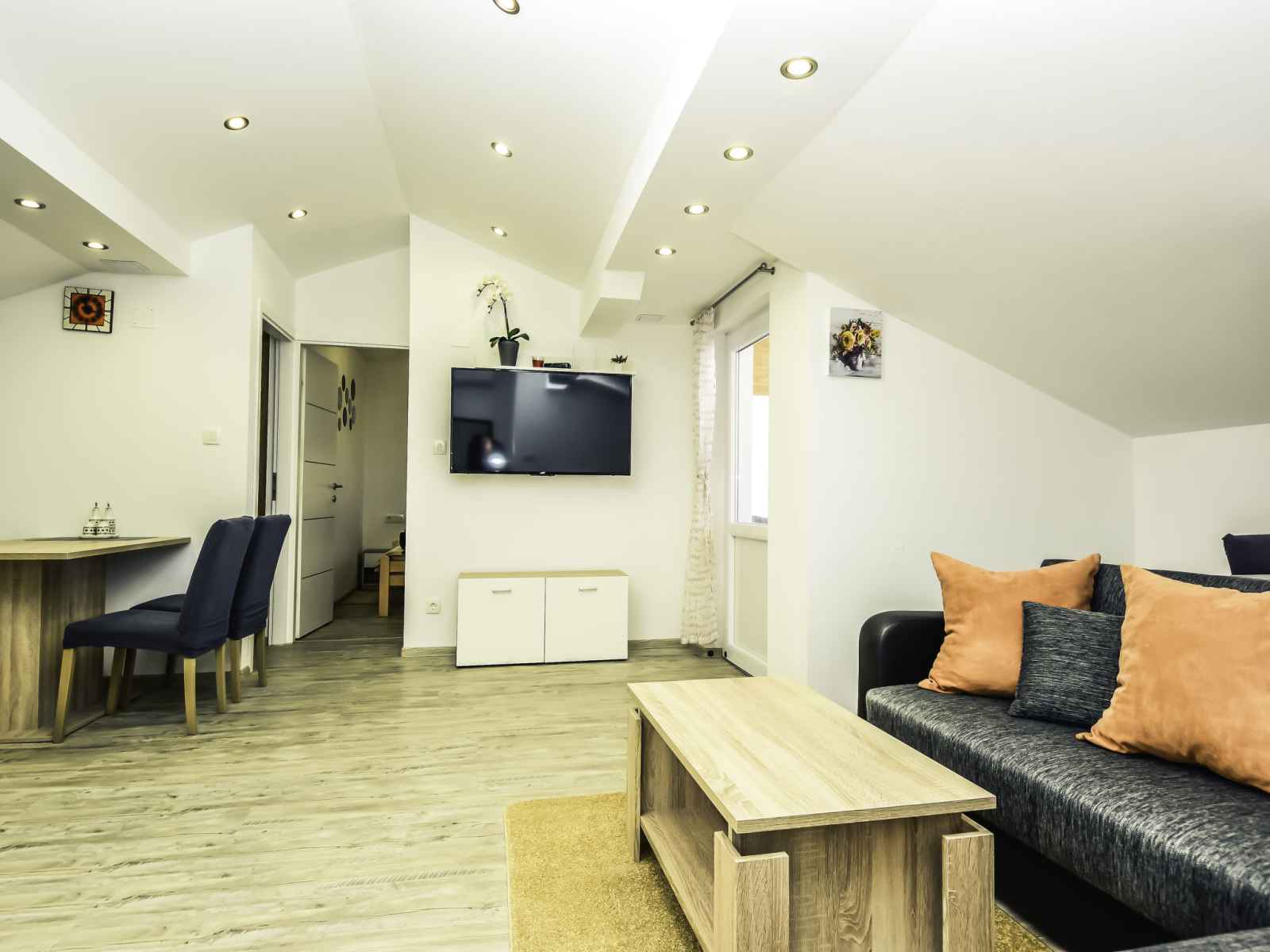 3-room apartment 60 m2, on the top floor, north-east facing position. living/dining room 36 m2, with sloping ceilings, ceiling height 130 - 270 cm with 1 sofabed (140 cm, length 200 cm), satellite tv (flat screen), air conditioning. exit to the terrace. 1 room with sloping ceilings, ceiling height 130 - 270 cm with 1 french bed (160 cm, length 200