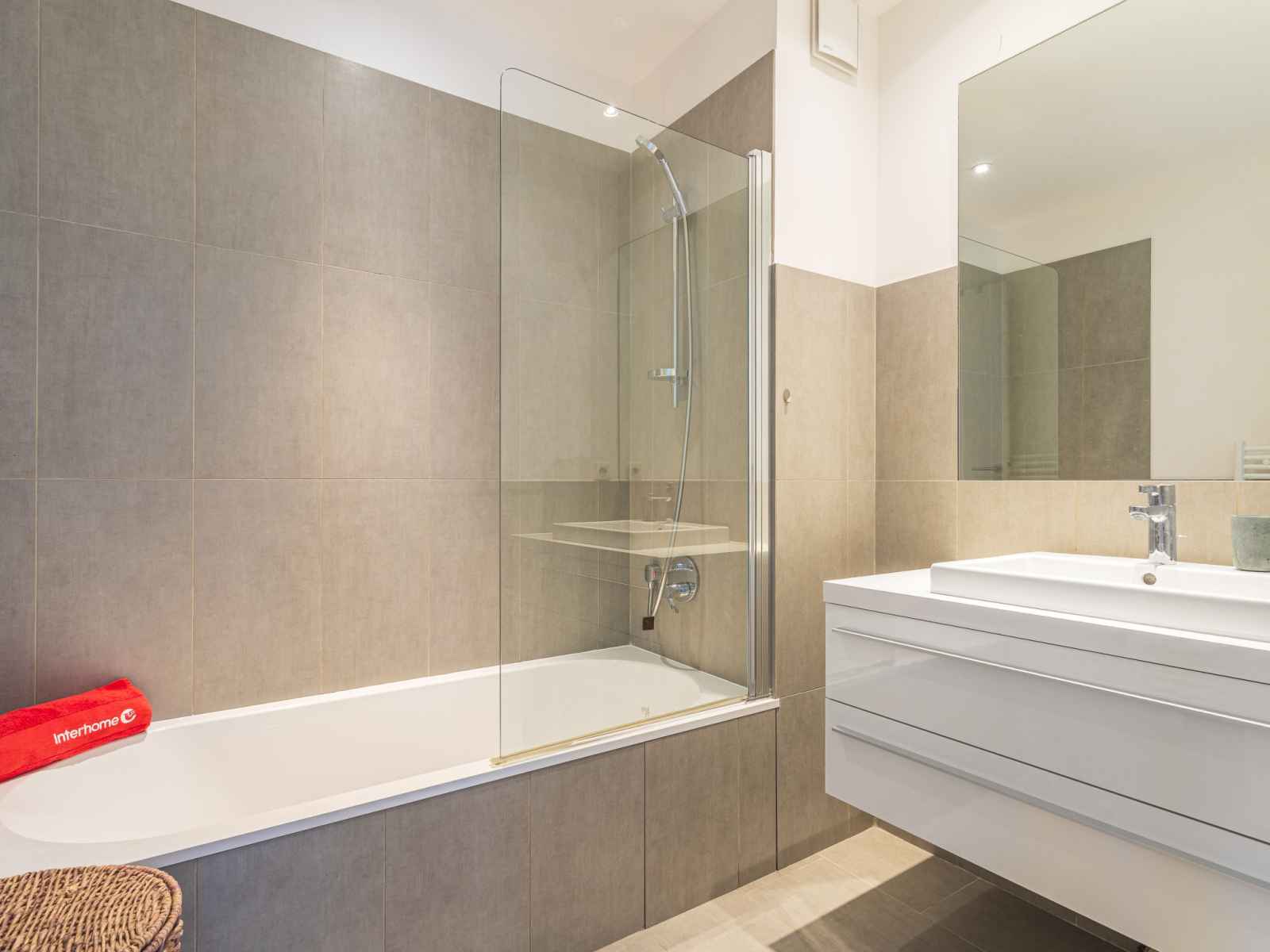 4-room apartment 75 m2 on 4th floor, south-east facing position. bright, comfortable furnishings: living/dining room with tv (flat screen). exit to the terrace. 1 room with 1 french bed (160 cm, length 200 cm), shower/wc. exit to the terrace. 1 room with 2 x 2 bunk beds (90 cm, length 190 cm). 1 room with 1 french bed (140 cm, length 200 cm). open