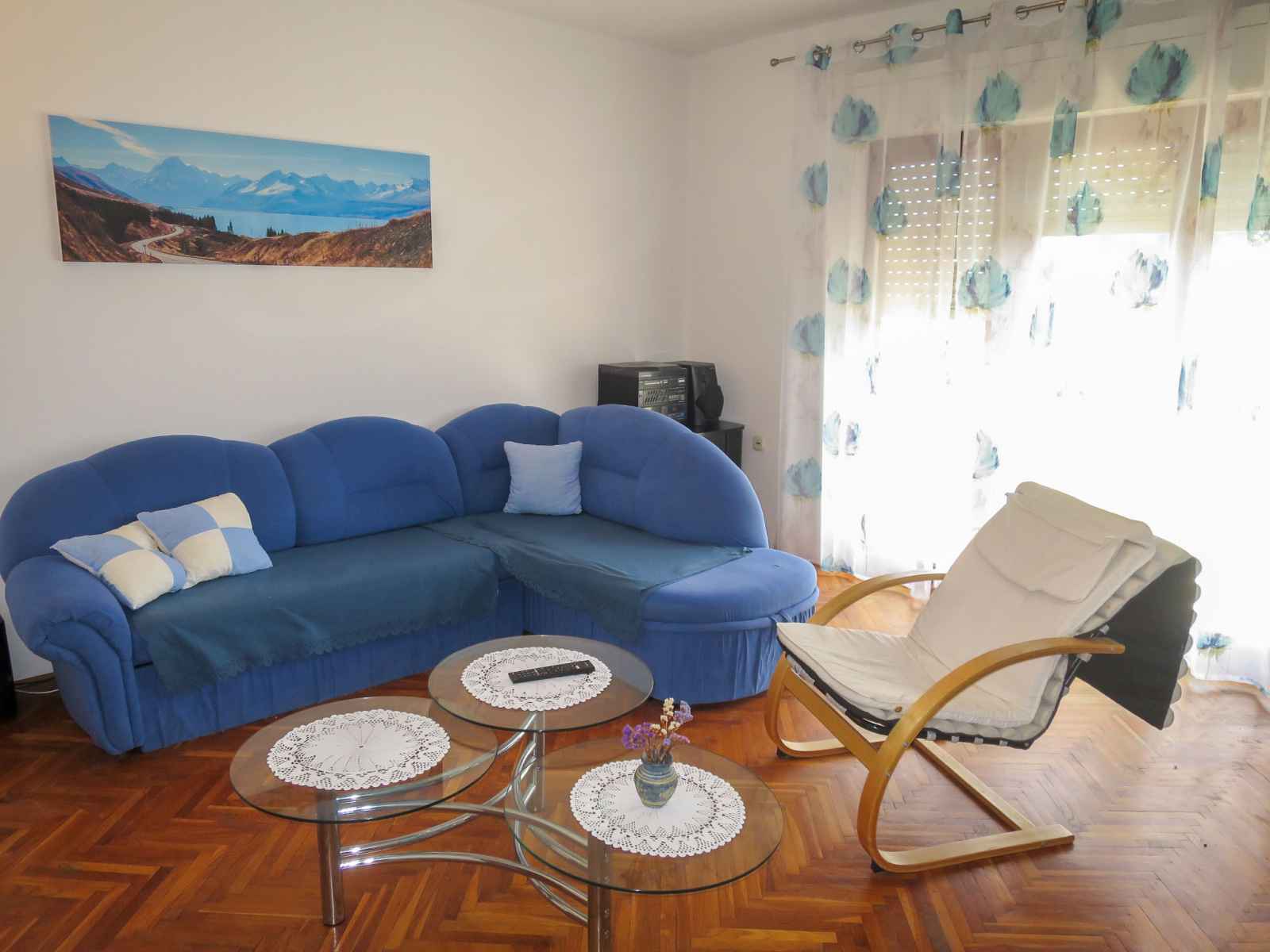4-room apartment 120 m2 on 1st floor, south-west facing position. living/dining room 45 m2 with satellite tv and air conditioning. exit to the terrace. 2 rooms, each room with 1 double bed (2 x 90 cm, length 200 cm). 1 room with 1 french bed (160 cm, length 200 cm). open kitchen (oven, dishwasher, 4 ceramic glass hob hotplates, kettle, microwave,