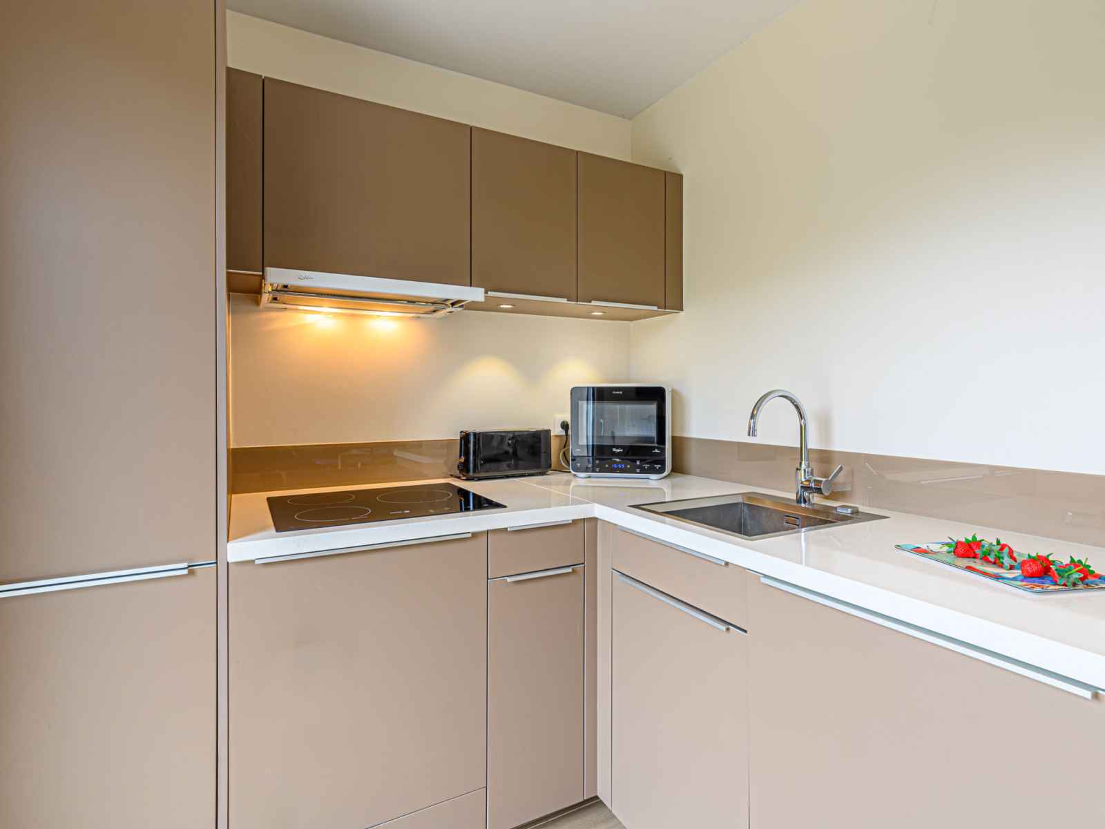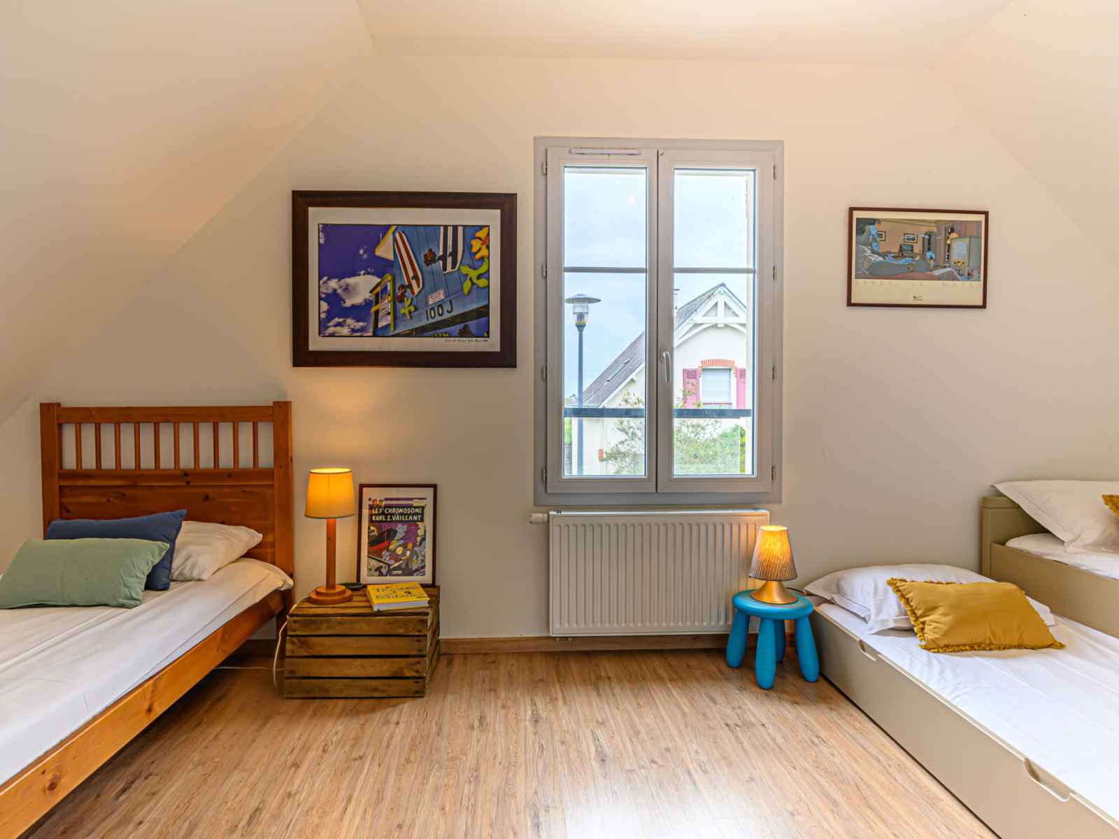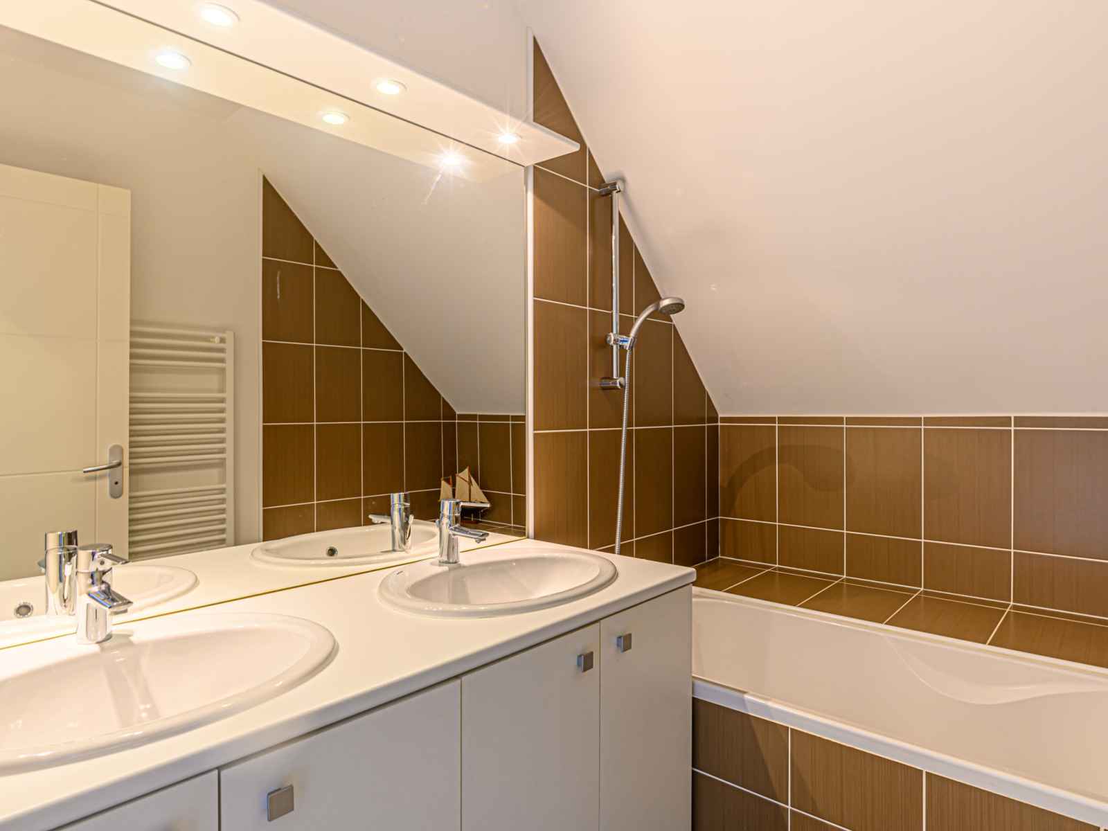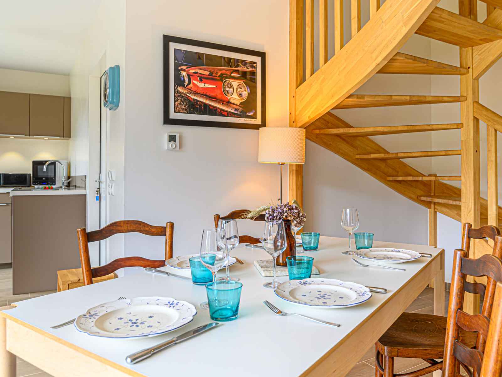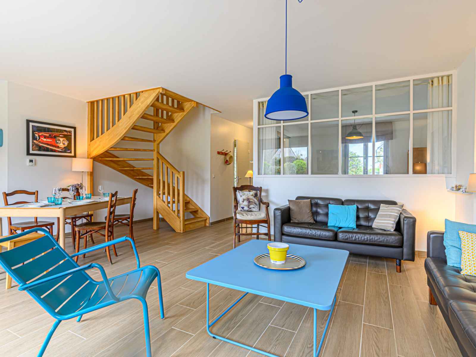 "ranguhan", 3-room terraced house 80 m2. living/dining room with tv (flat screen). exit to the terrace. office. open kitchen (dishwasher, 3 induction hot plates, toaster, microwave, electric coffee machine). shower/wc. gas heating. upper floor: 1 room with 1 french bed (1 x 160 cm, length 200 cm). 1 room with 1 bed (90 cm, length 190 cm), 1