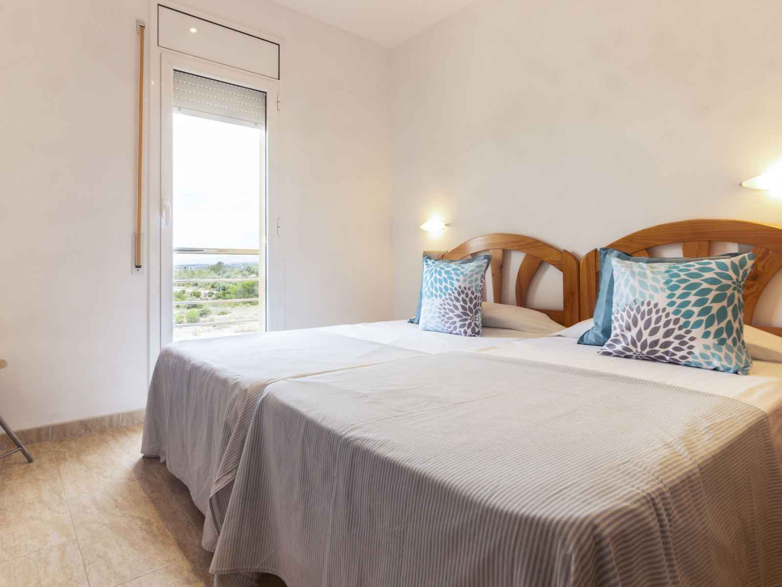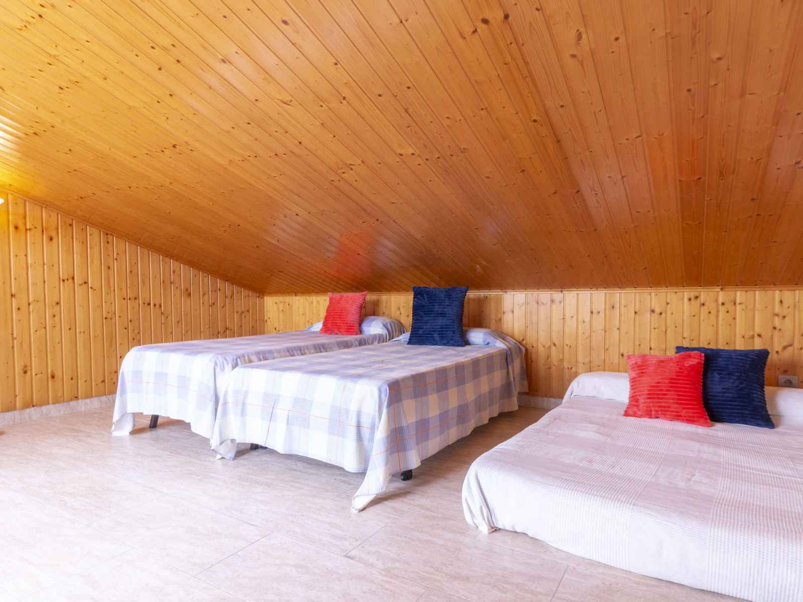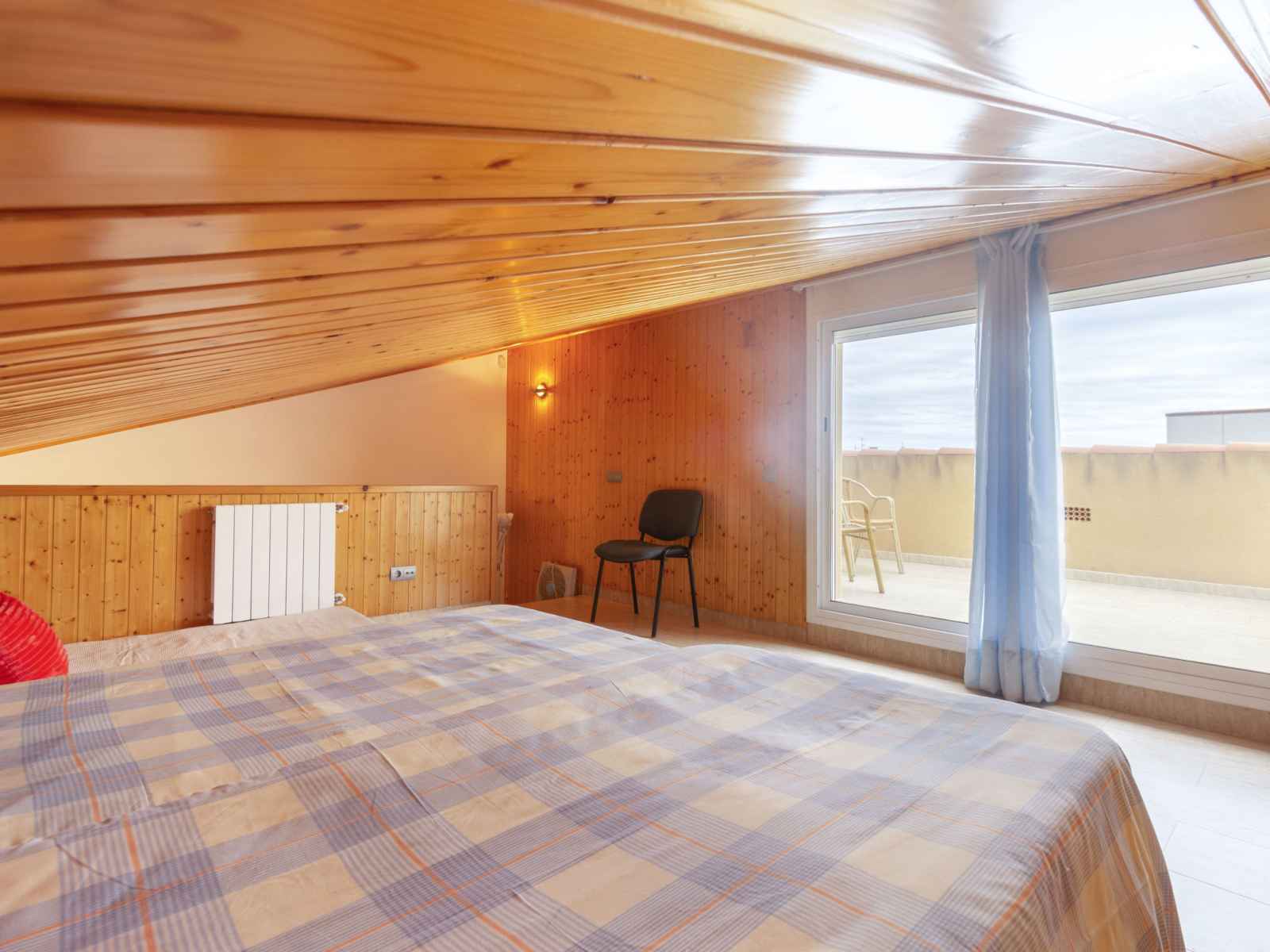 option. Upper floor: 2 large rooms with panoramic window, each room with 1 french bed (150 cm). 1 children's room with 1 bed (90 cm). 1 double bedroom with panoramic window with 2 beds. Bath/WC, shower/WC, hydro massage bath. Top floor: with sloping ceilings, 1 children's room with 3 beds (90 cm). Exit to the terrace. Patio. Terrace furniture. Distant view of the sea. Facilities: washing machine, iron. Internet (WiFi, free). Parking (fenced) at the house. Suitable for families. Maximum 1 pet/ dog allowed. HUTTE001654 // Reg. Nr.: ESFCTU00004302000092216900000000000000000HUTTE0016542