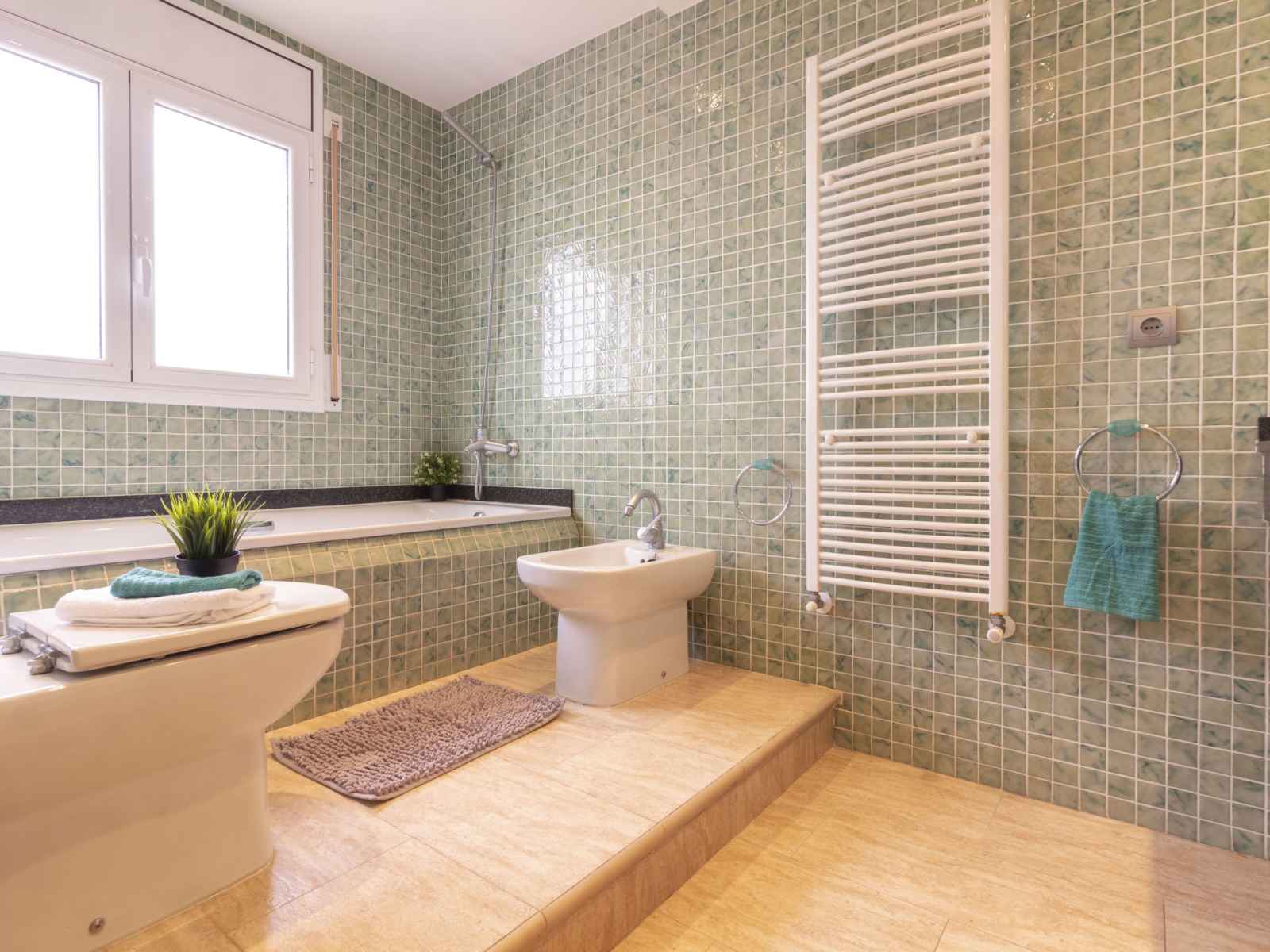 6-room terraced house 113 m2 on 2 levels. bright, comfortable and cosy furnishings: living/dining room with panoramic window with tv. exit to the garden, to the swimming pool. 1 double bedroom with 1 double bed. kitchen (oven, dishwasher, 4 ceramic glass hob hotplates, freezer, electric coffee machine). exit to the terrace. shower/wc. no heating