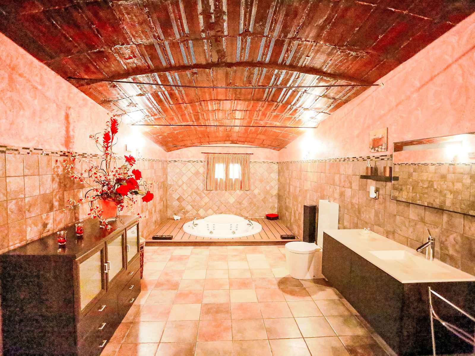 plates, oven, dishwasher, microwave) with bar. Bath/shower/WC, double hand-basin, hydro massage bath, Sauna. Large patio. Terrace furniture, barbecue, covered balcony, sitting area. Facilities: washing machine, dryer. Internet (WiFi, free). Please note: maximum 1 pet/ dog allowed. TV only ES, DE, FR. Price of internet: 25€ per week. HUTTE000854 // Reg. Nr.: ESFCTU0000430190005533050000000000000000HUTTE-0008540