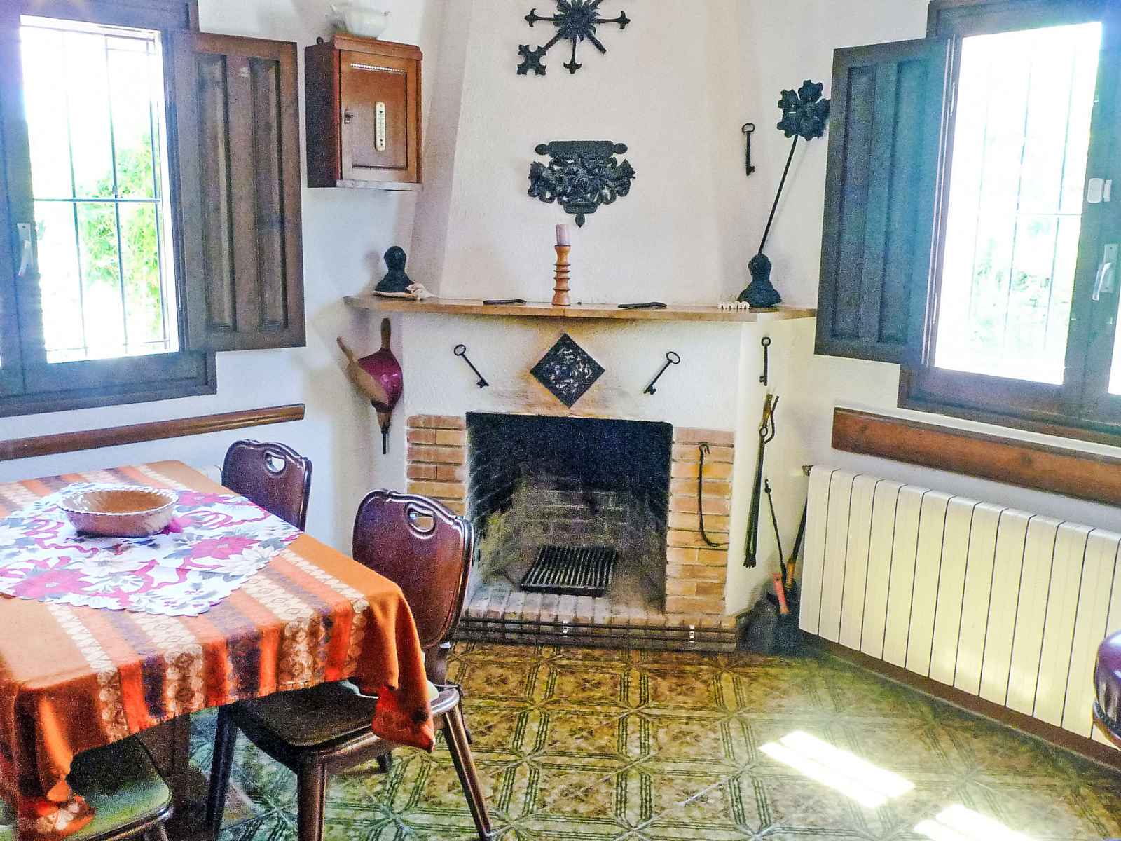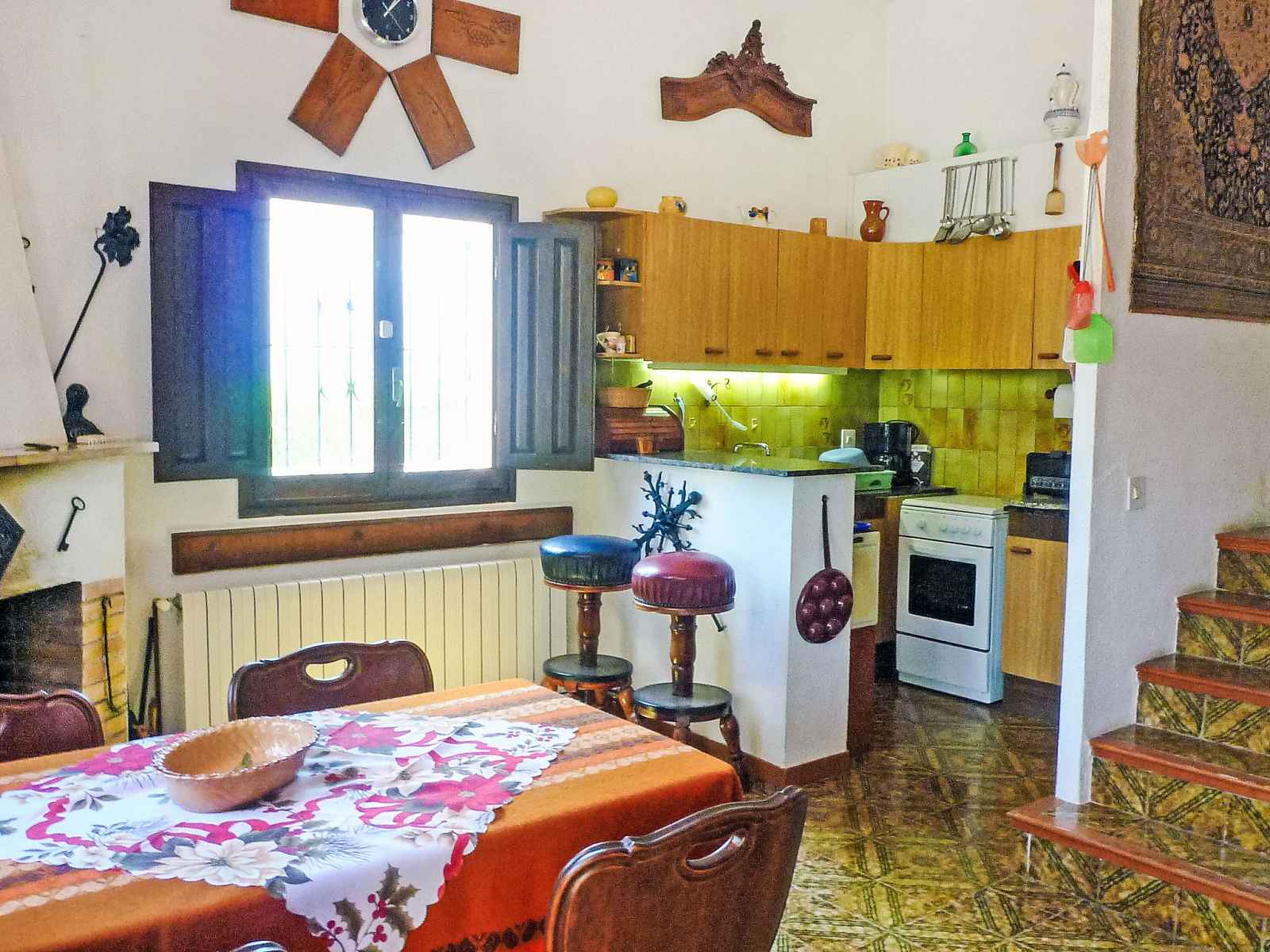 4-room house 60 m2. practical and comfortable furnishings: living/dining room with winter garden with open-hearth fireplace and dining table. exit to the patio. 1 room with 2 beds (90 cm). 1 room with 1 bed (90 cm). open kitchen (4 hot plates, oven, electric coffee machine) with bar. shower/wc. heating, air-conditioning, forced-air heating. upper