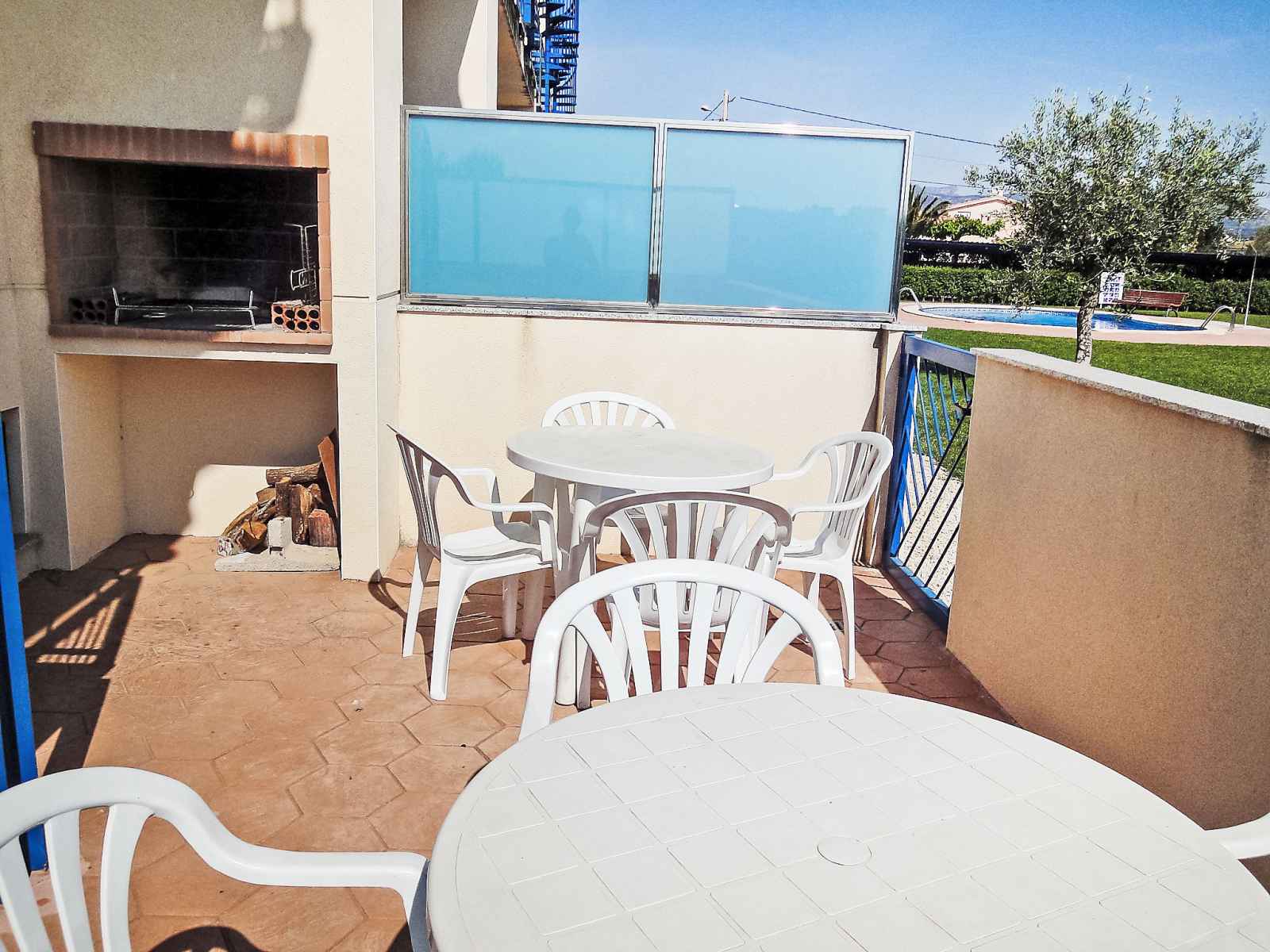 30.sep.) with internal staircase. outdoor shower. private: patio (15 m2), garden furniture, barbecue, roofed, parking space n 7. supermarket 700 m, restaurant 800 m, bus stop 11 km, railway station 500 m, sandy beach 1.5 km, swimming bay 800 m. nearby attractions: parque natural del ebro 5 km, parque portaventura 65 km, pitch & putt 2 km. national road n-340 nearby.