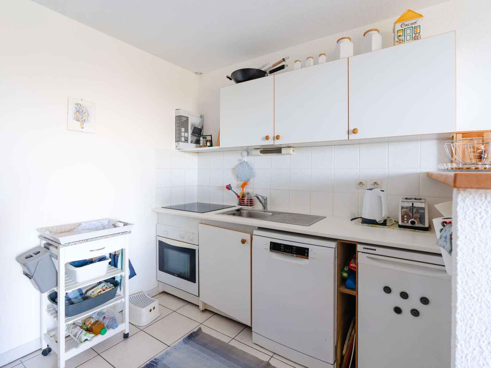 On the ground floor: a lounge-kitchen area with sofa (bed for one person), TV (German channels), 2 armchairs, a German bench seat, an open-plan fully-equipped kitchen (fridge, dishwasher, oven, microwave, coffee maker, 4-burner ceramic hob) and WC.