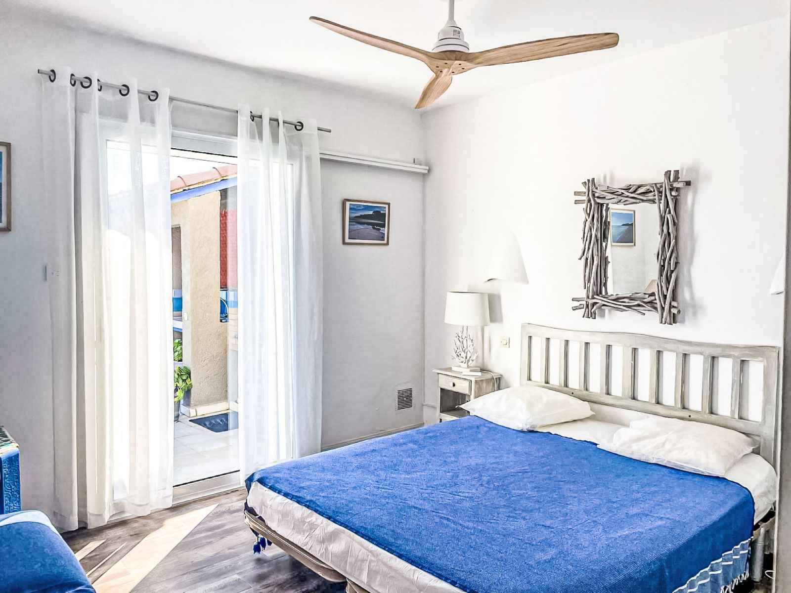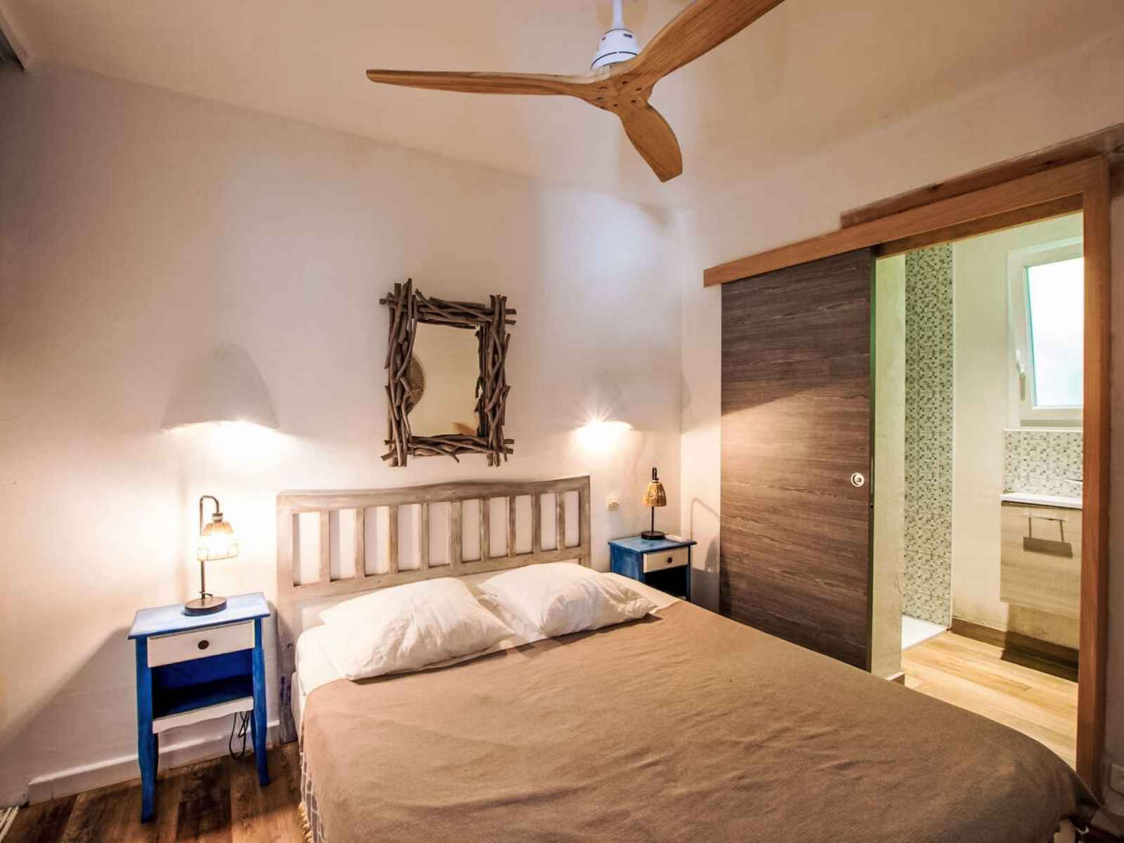 2-family house "casa blue". in the district of olmucciu, 30 m from the sea, 30 m from the beach, direct access to the beach. private: property (fenced), parking at the house. supermarket 6 km, restaurant 50 m, bakery 6 km, bus stop 6 km, sandy beach "plage des americains" 30 m. sailing school 8 km. nearby attractions: plage des américains 30 m,