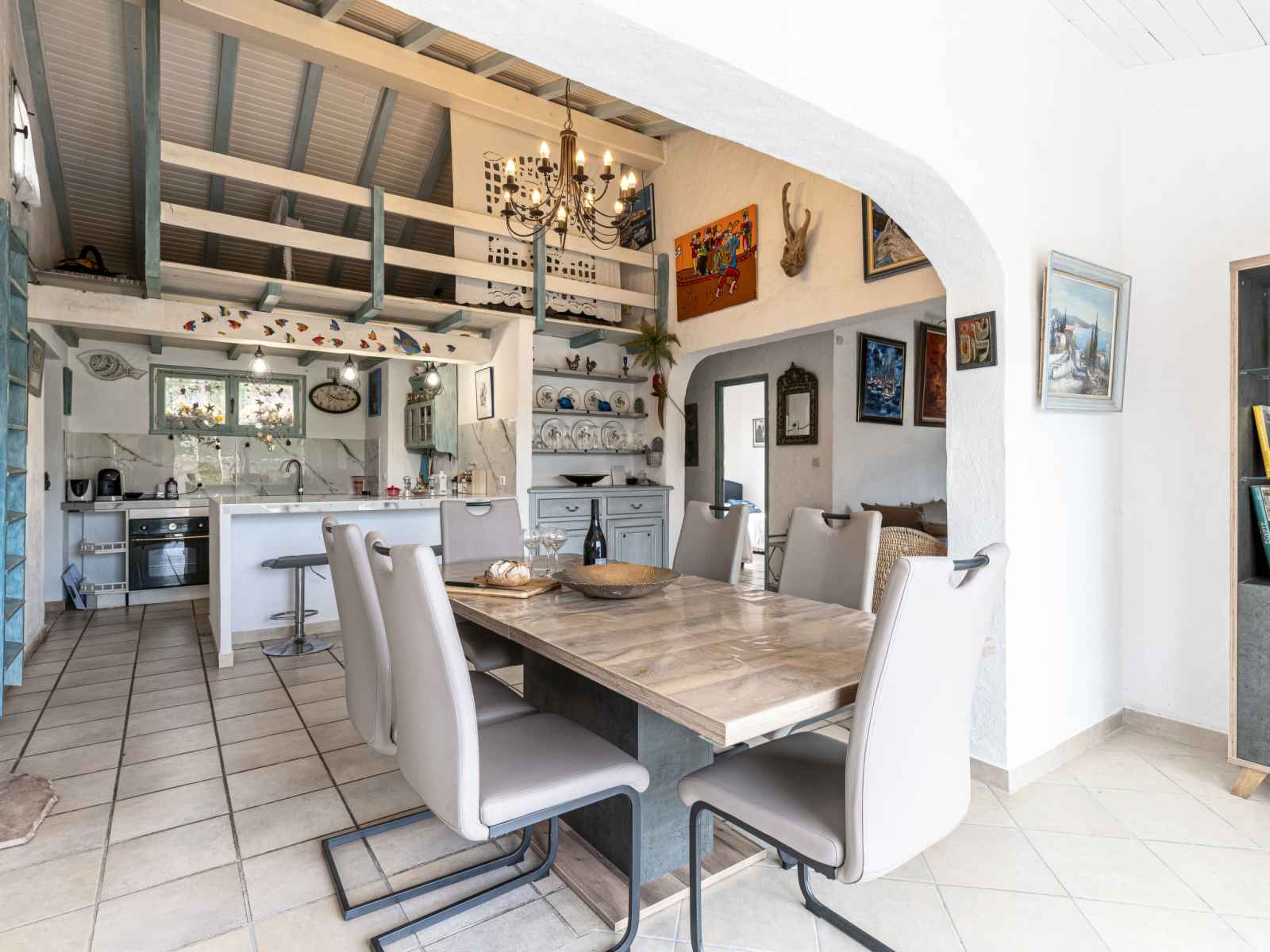 dishwasher, 3 ceramic glass hob hotplates, toaster, kettle, microwave, freezer, electric coffee machine, Capsules for coffee machine (Nespresso) extra, cooking island). 2 showers, 2 sep. WC's. Electric heating, air-conditioning. Comfortable furnishings in the country house style. Large terrace 55 m2. Terrace furniture, electric barbecue, deck chairs. Very beautiful view of the sea and the mountains. Facilities: washing machine. Internet (WiFi, free). Please note: non-smoking house. Maximum 1 small pet/ dog allowed. Smoke alarm. Offer by a private individual according to Art. 155, IV of CGI.