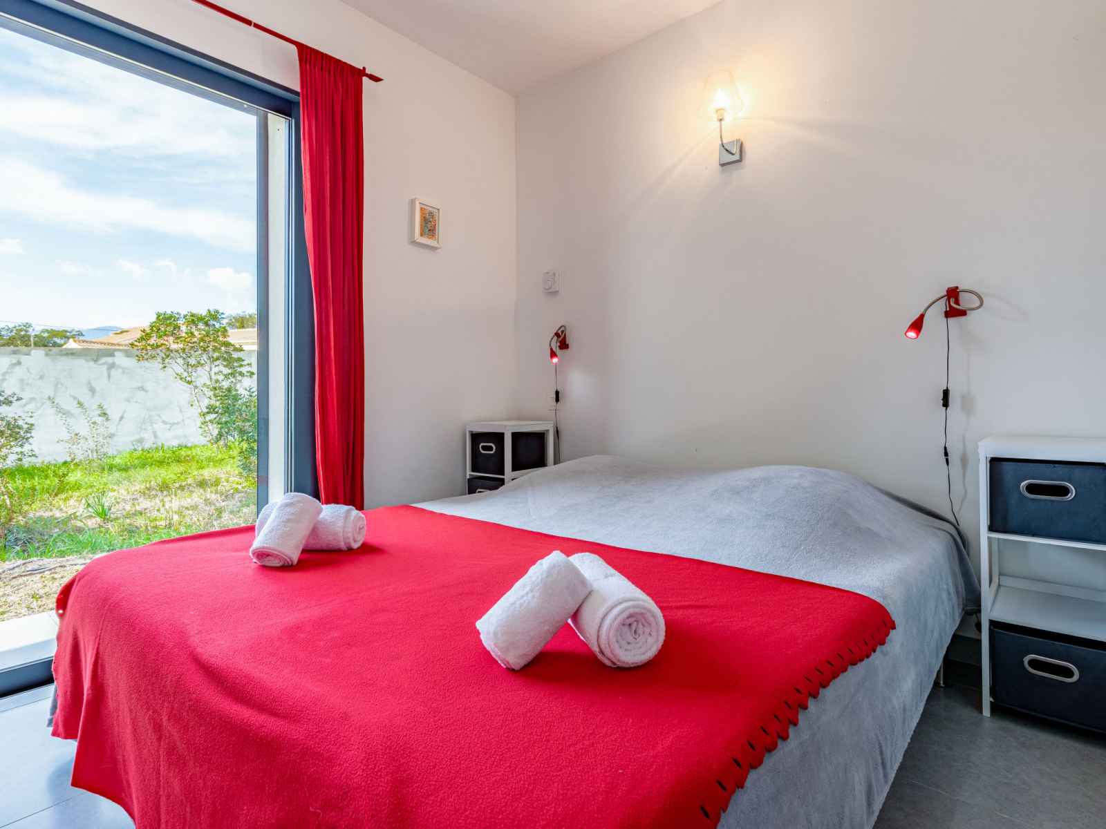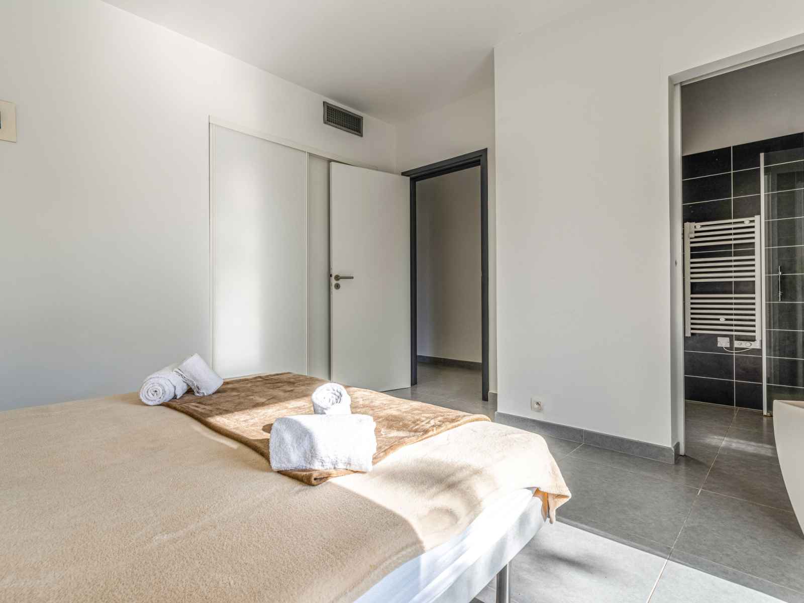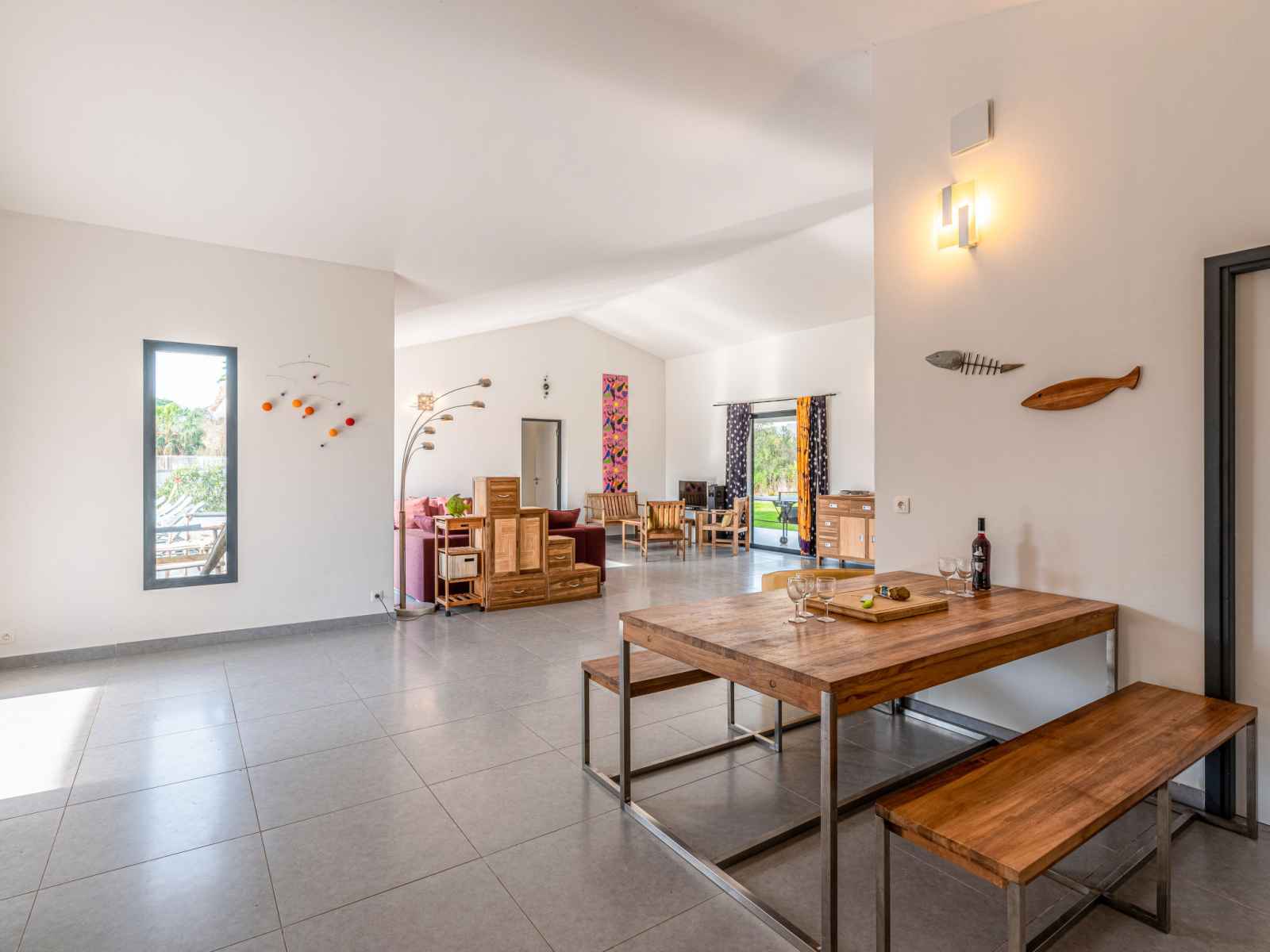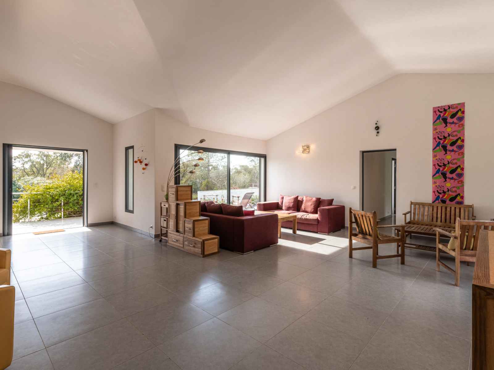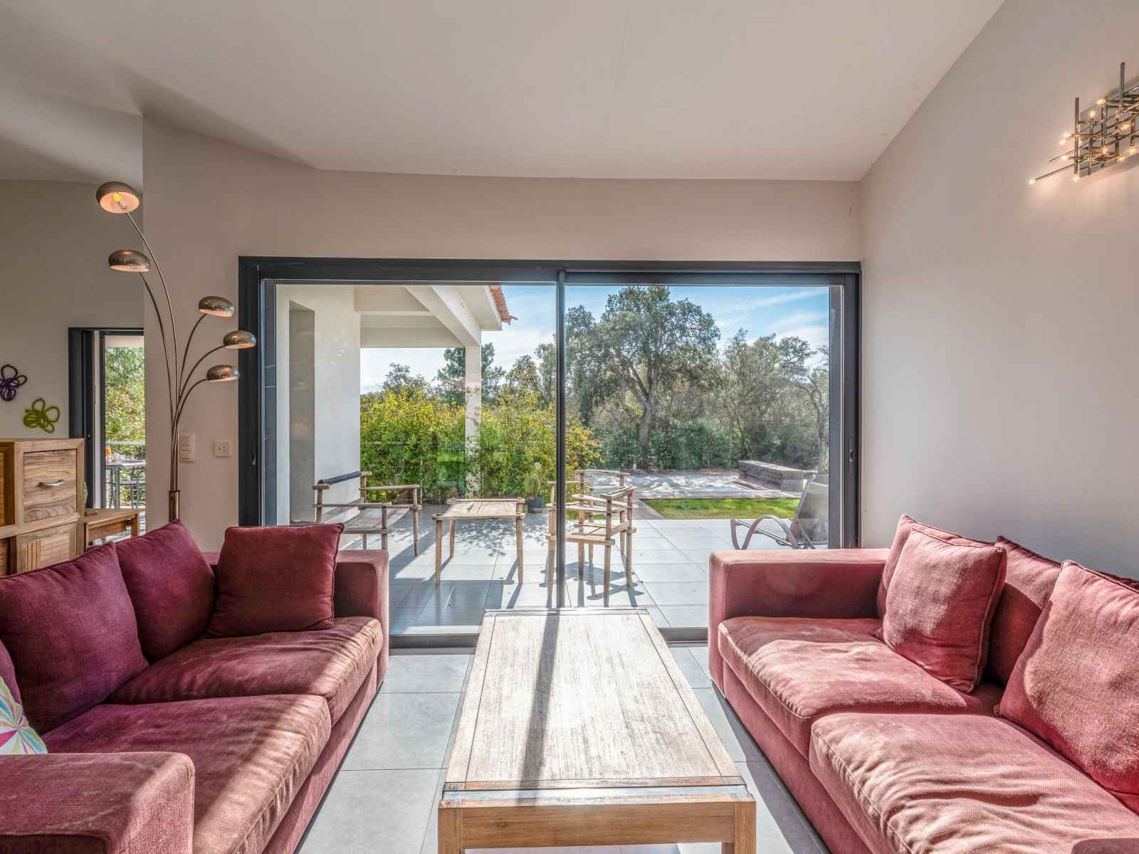 dishwasher, 4 induction hot plates, kettle, microwave, electric coffee machine) with dining table. Exit to the terrace. Electric heating, air-conditioning. Large terrace 120 m2, east facing position. Terrace furniture, barbecue, deck chairs (6). Facilities: washing machine, dryer. Internet (WiFi, free). Please note: non-smoking house. Smoke alarm. Offer by a private individual according to Art. 155, IV of CGI.