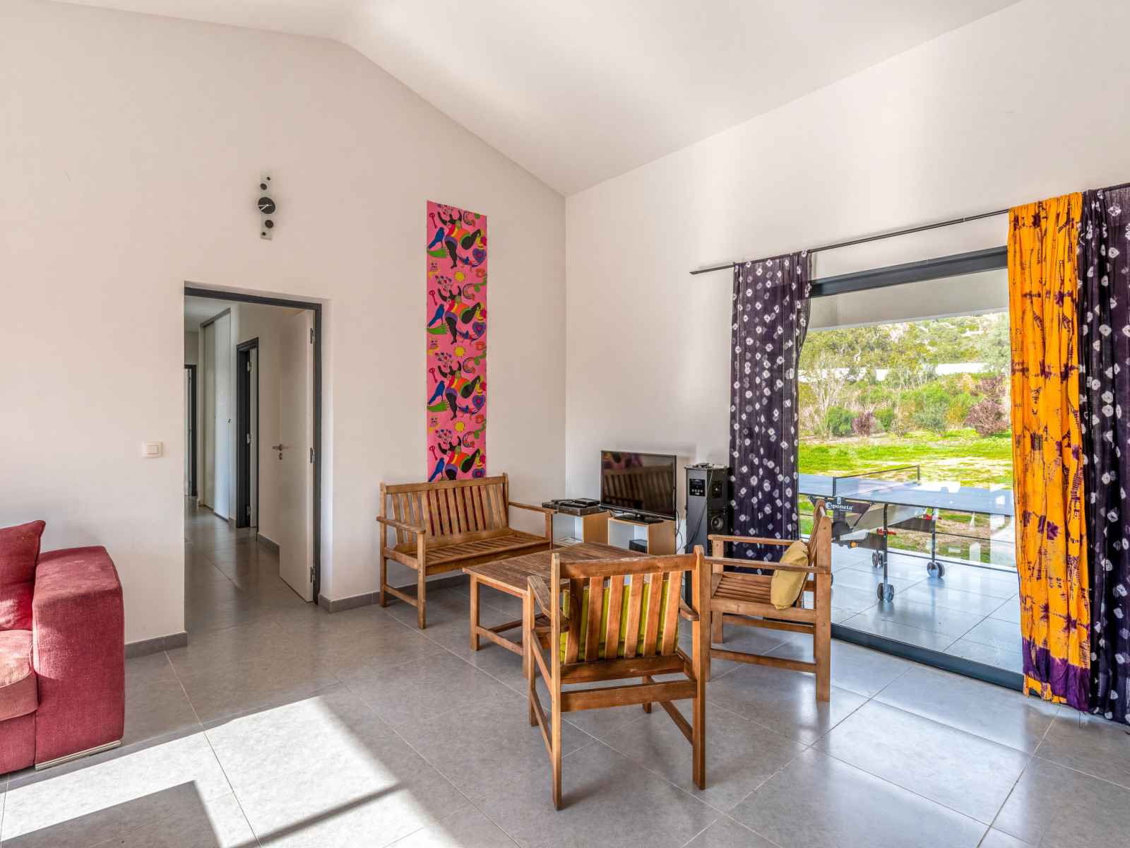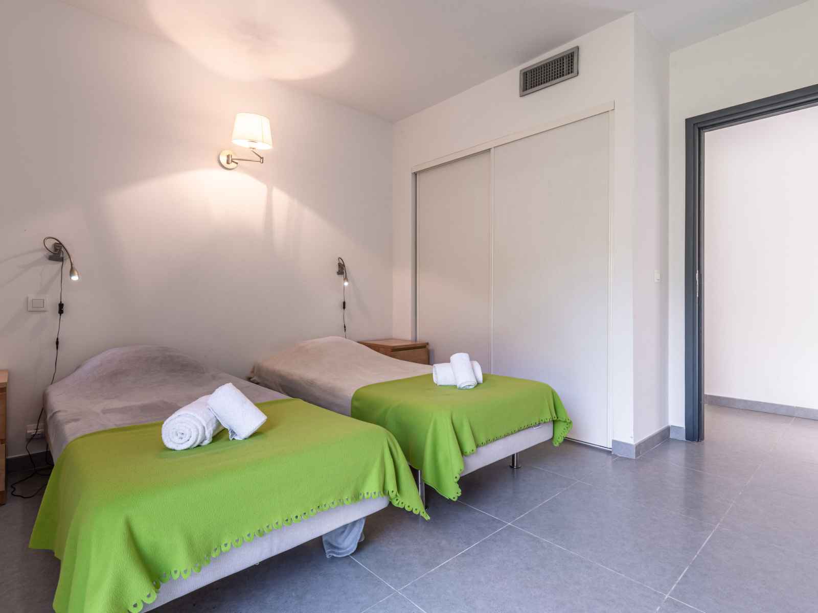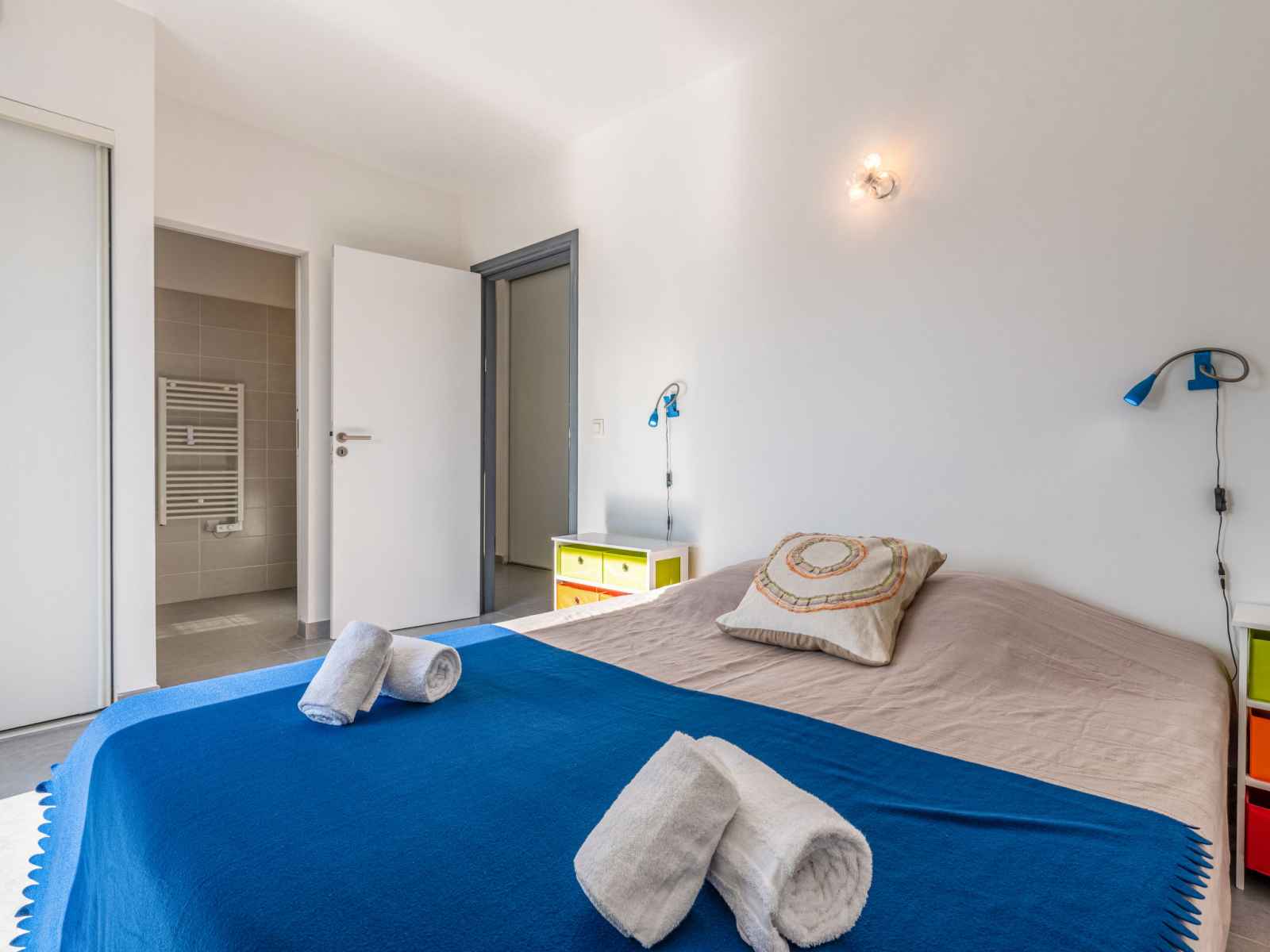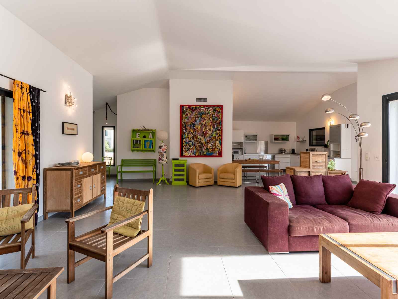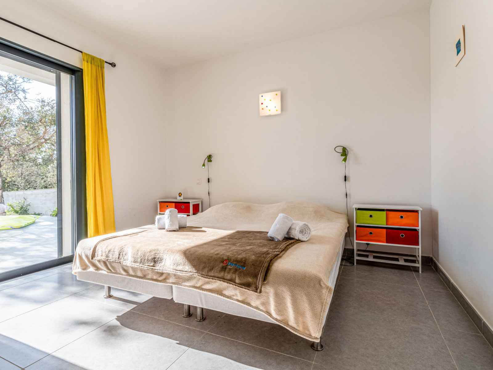 dishwasher, 4 induction hot plates, kettle, microwave, electric coffee machine) with dining table. Exit to the terrace. Electric heating, air-conditioning. Large terrace 120 m2, east facing position. Terrace furniture, barbecue, deck chairs (6). Facilities: washing machine, dryer. Internet (WiFi, free). Please note: non-smoking house. Smoke alarm. Offer by a private individual according to Art. 155, IV of CGI.
