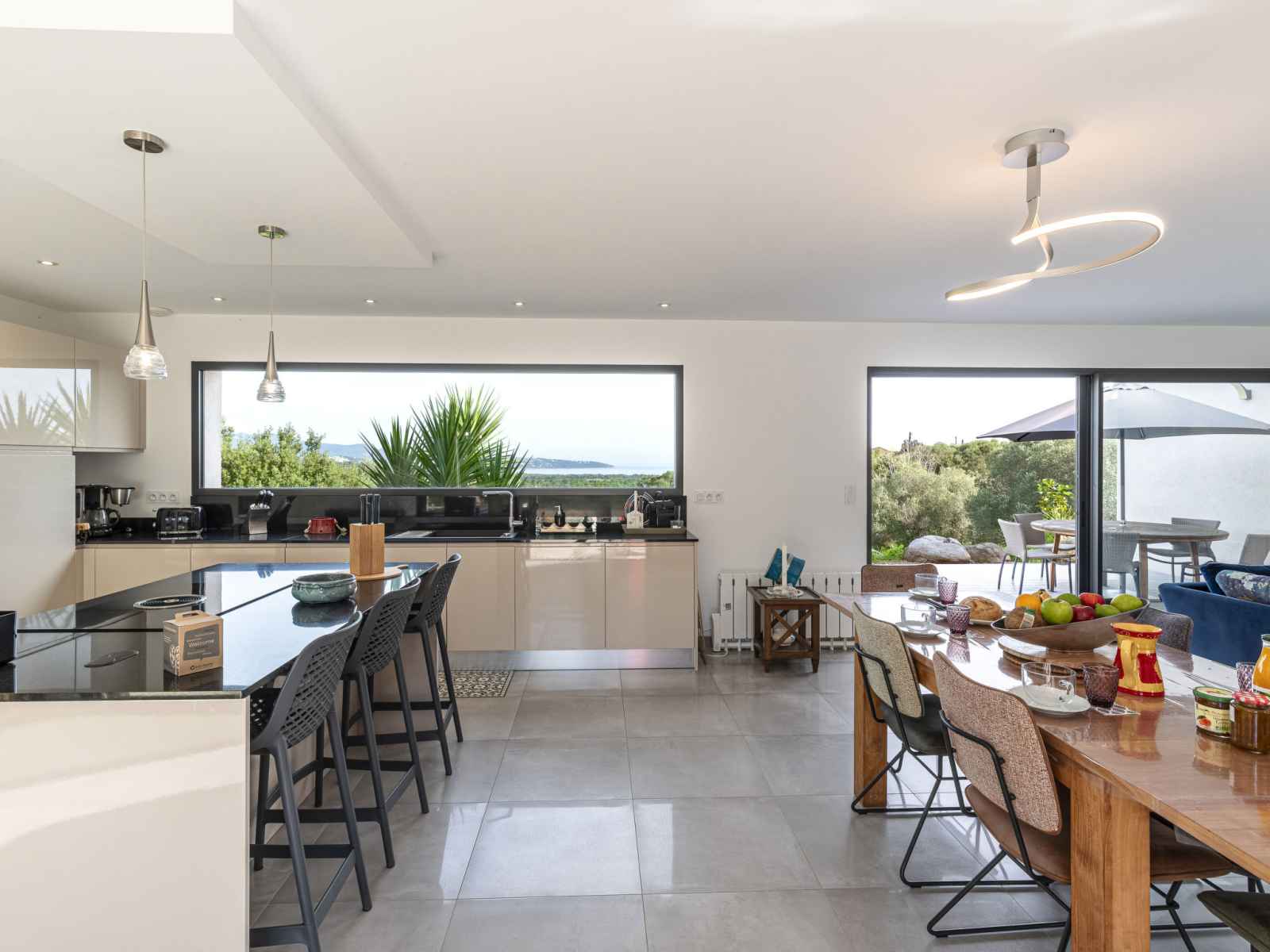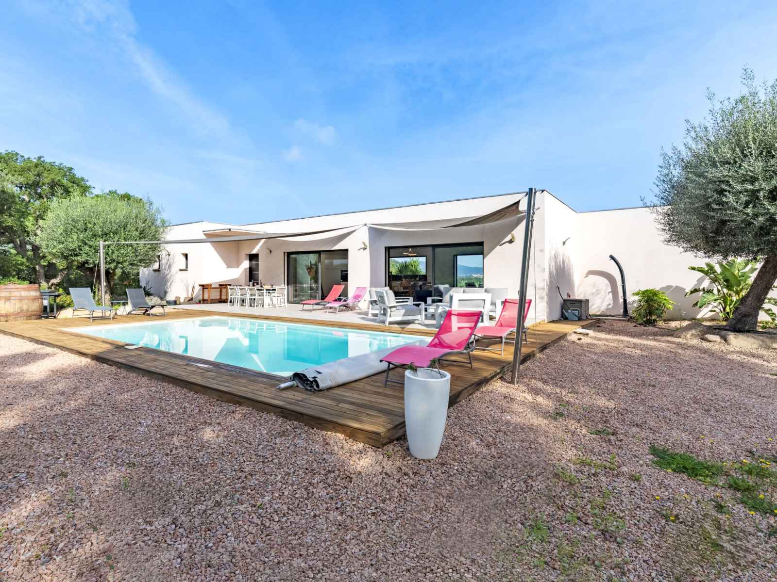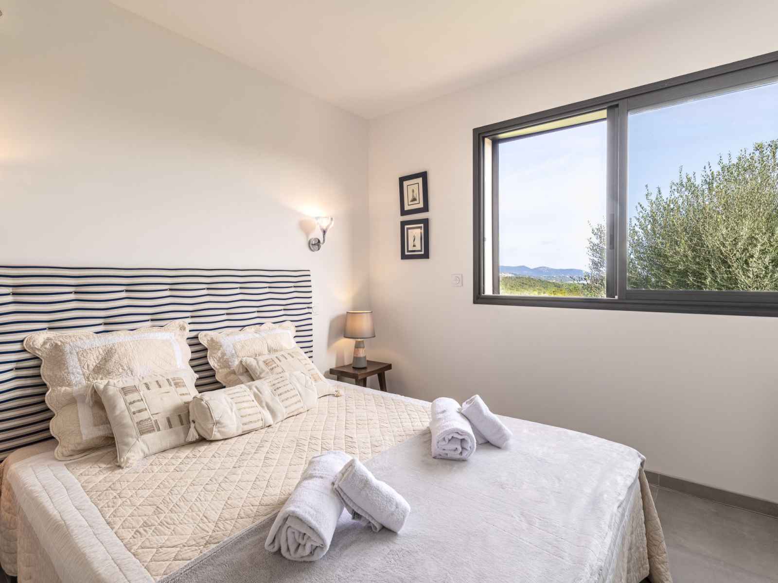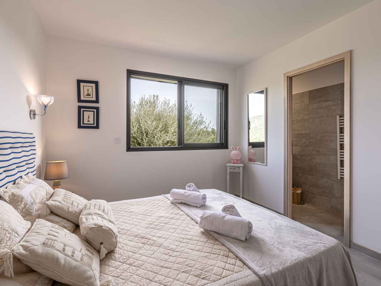 2 beds (90 cm, length 190 cm), shower and air conditioning. 1 room with 1 french bed (160 cm, length 200 cm), shower and air conditioning. 1 room with 1 french bed (160 cm, length 200 cm), separate WC, shower and air conditioning. Open kitchen (oven, dishwasher, 4 induction hot plates, toaster, kettle, microwave, freezer, electric coffee machine, cooking island). Terrace furniture, barbecue, deck chairs. Beautiful view of the sea and the mountains. Facilities: washing machine, iron, baby cot, hair dryer. Internet (WiFi, free). Please note: non-smoking house. Smoke alarm. Offer by a private individual according to Art. 155, IV of CGI.
