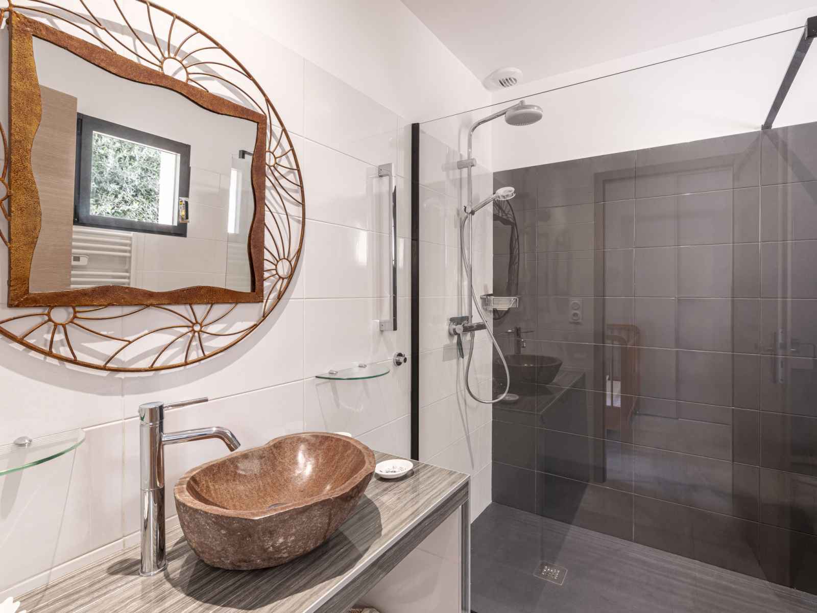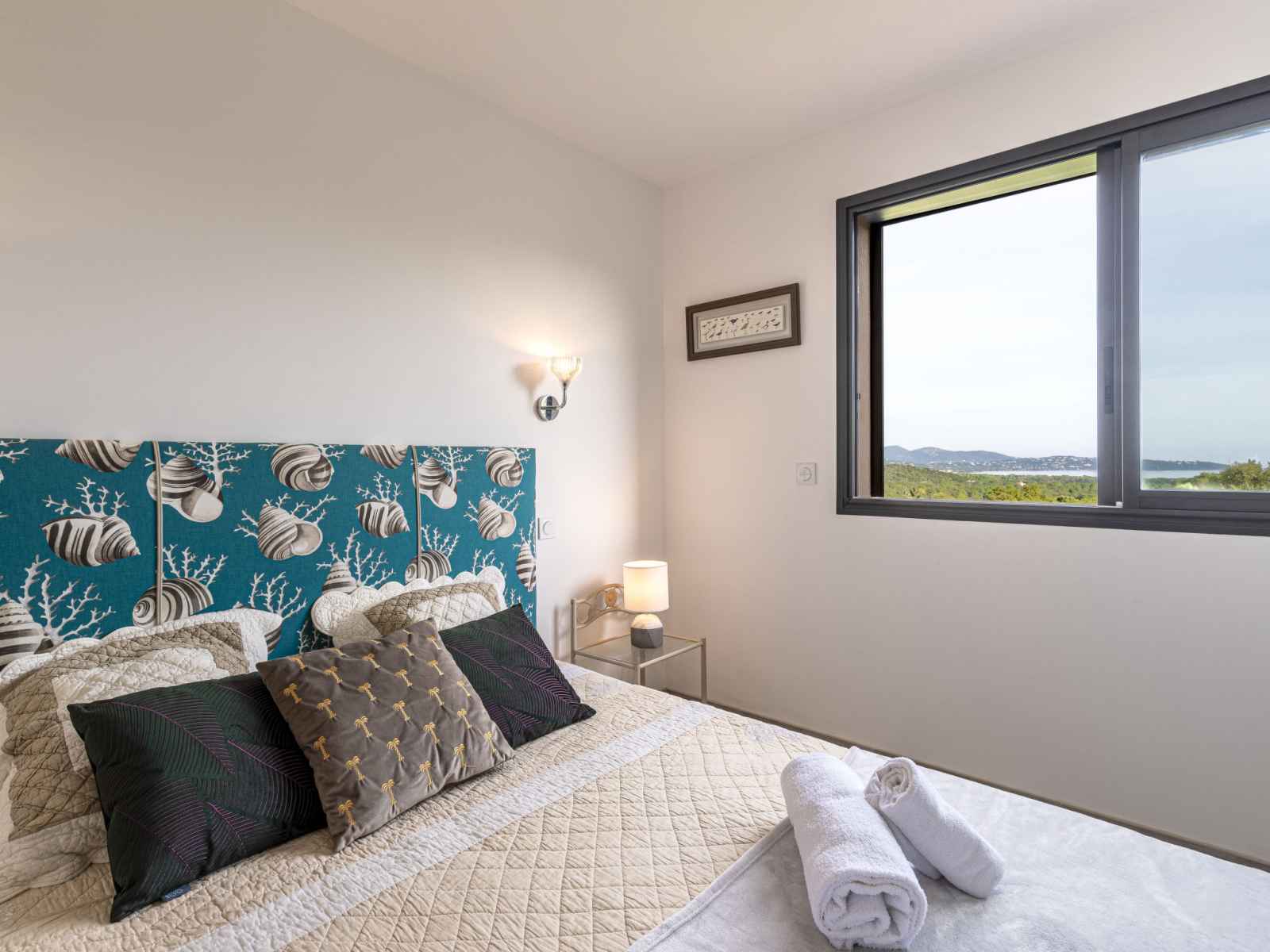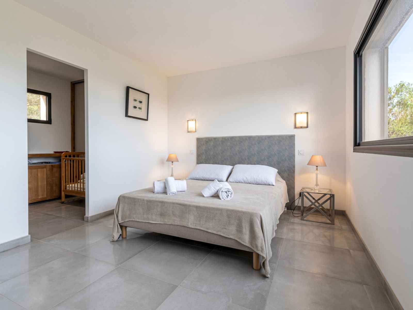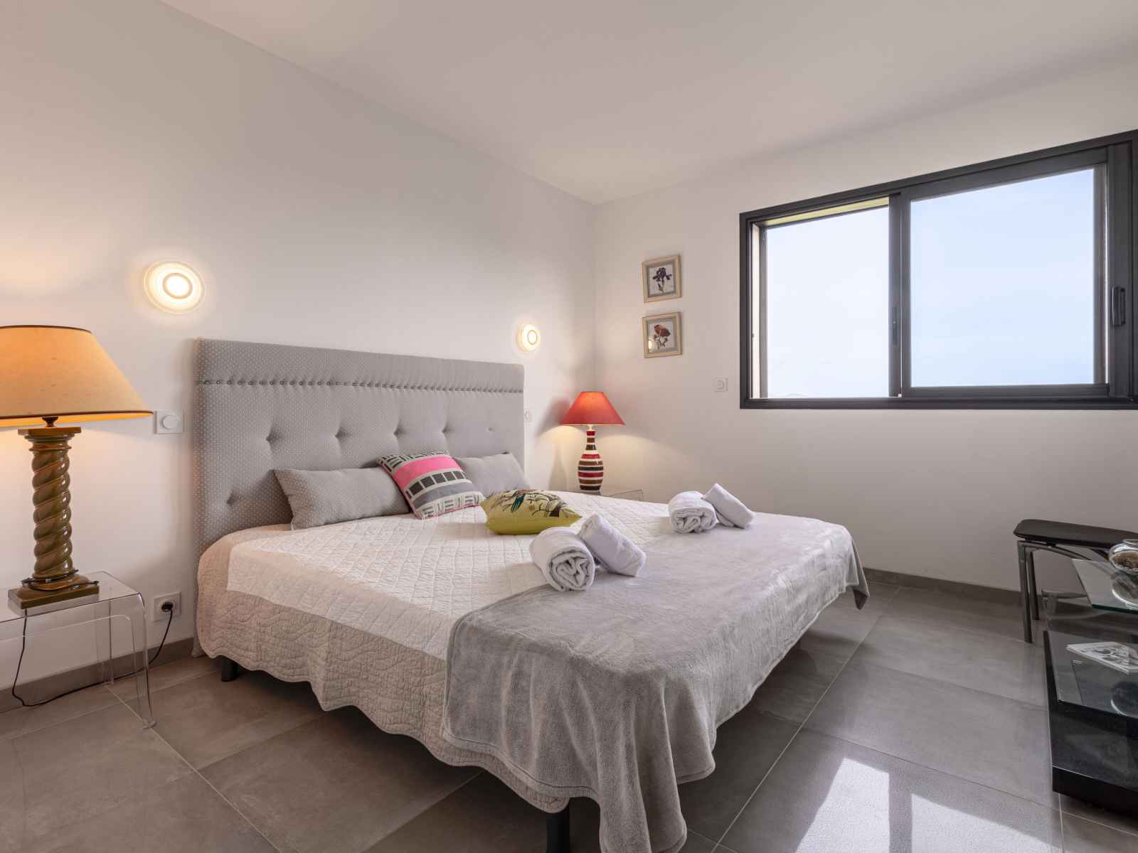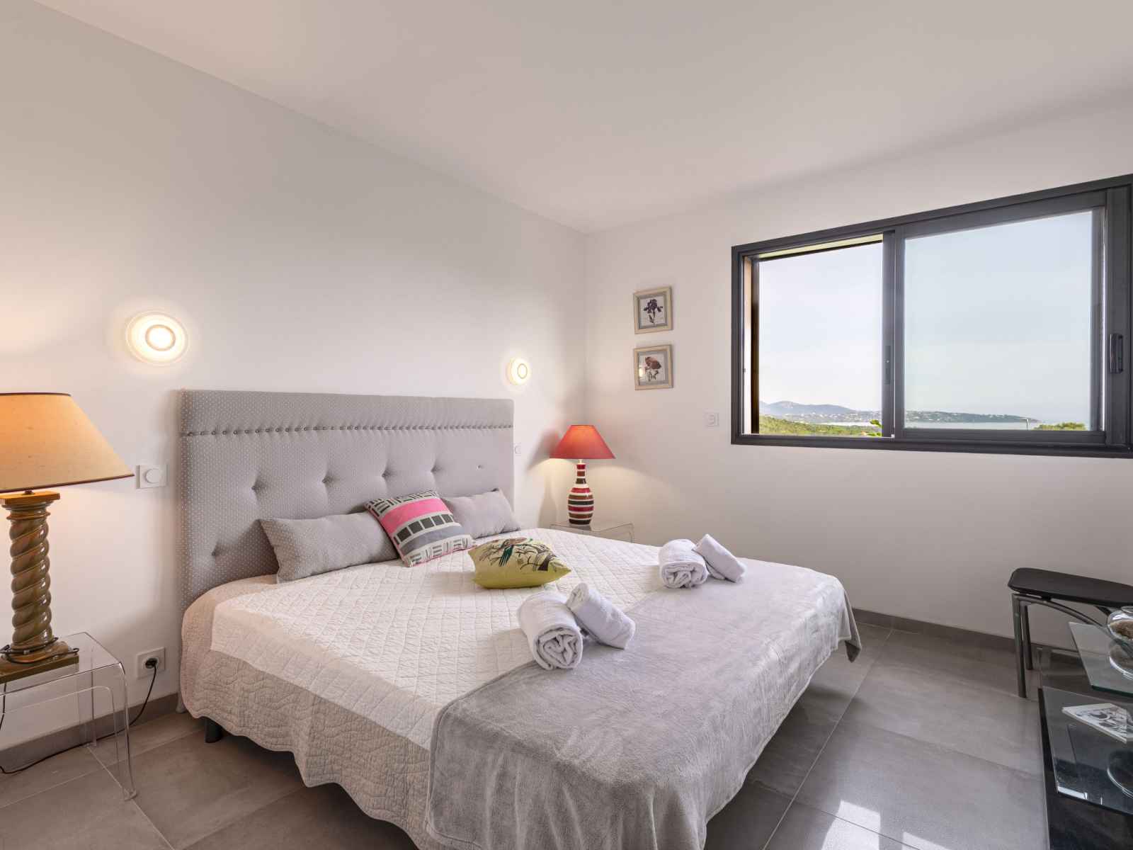 2 beds (90 cm, length 190 cm), shower and air conditioning. 1 room with 1 french bed (160 cm, length 200 cm), shower and air conditioning. 1 room with 1 french bed (160 cm, length 200 cm), separate WC, shower and air conditioning. Open kitchen (oven, dishwasher, 4 induction hot plates, toaster, kettle, microwave, freezer, electric coffee machine, cooking island). Terrace furniture, barbecue, deck chairs. Beautiful view of the sea and the mountains. Facilities: washing machine, iron, baby cot, hair dryer. Internet (WiFi, free). Please note: non-smoking house. Smoke alarm. Offer by a private individual according to Art. 155, IV of CGI.