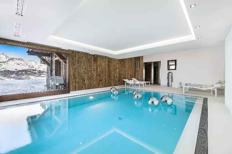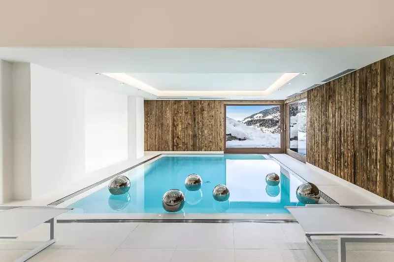 L’espace bien-être au niveau -1 ravira petits et grands avec piscine intérieure, home cinéma et baby-foot.