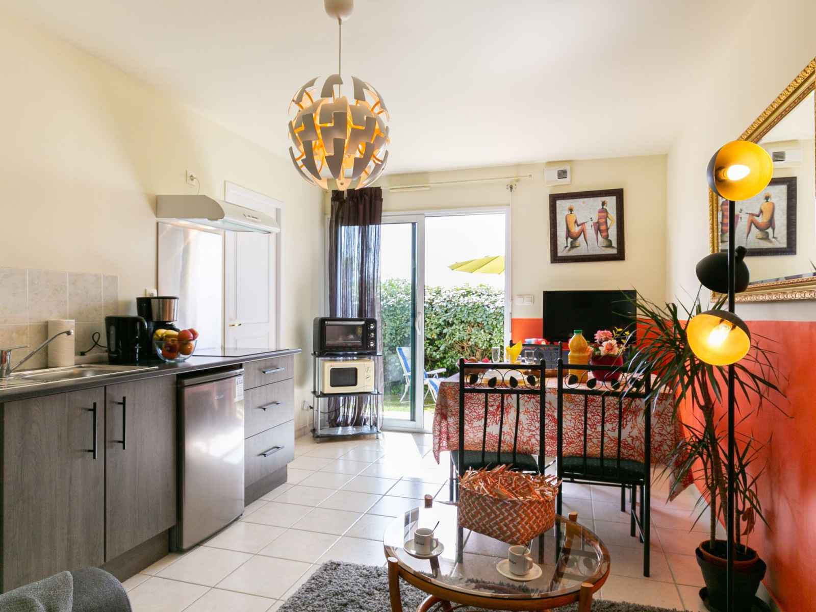 "studio coquet", 1-room studio 30 m2, on the ground floor. practical and cosy furnishings: living/dining room with 1 french bed (140 cm, length 190 cm), tv (flat screen). exit to the patio. kitchenette (mini-oven, oven, 4 ceramic glass hob hotplates, toaster, kettle, microwave, electric coffee machine). shower/wc. electric heating. small patio 20