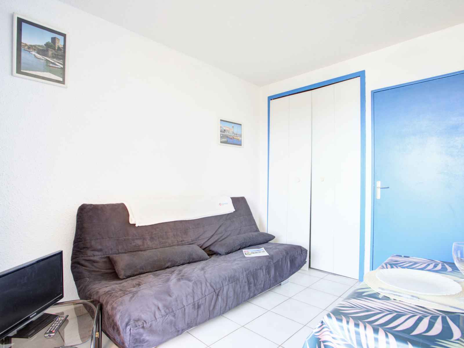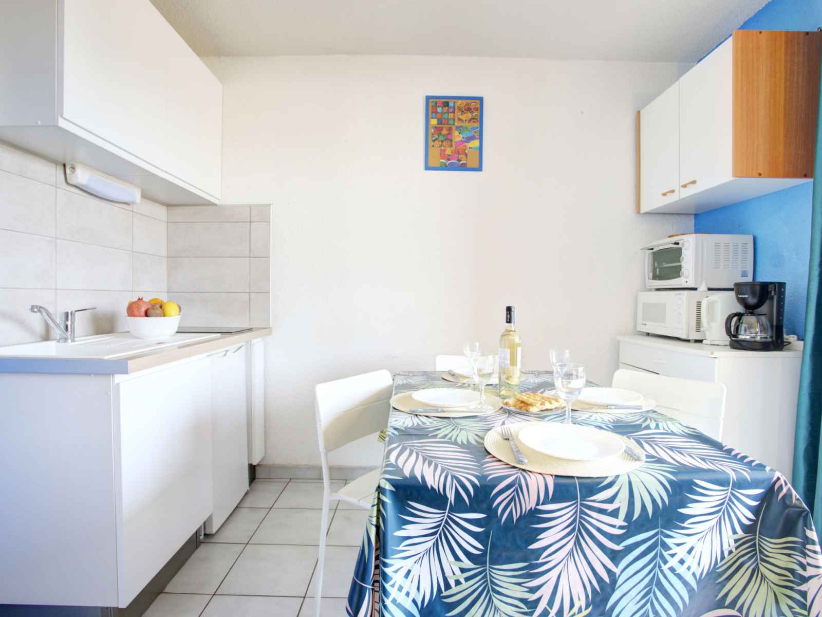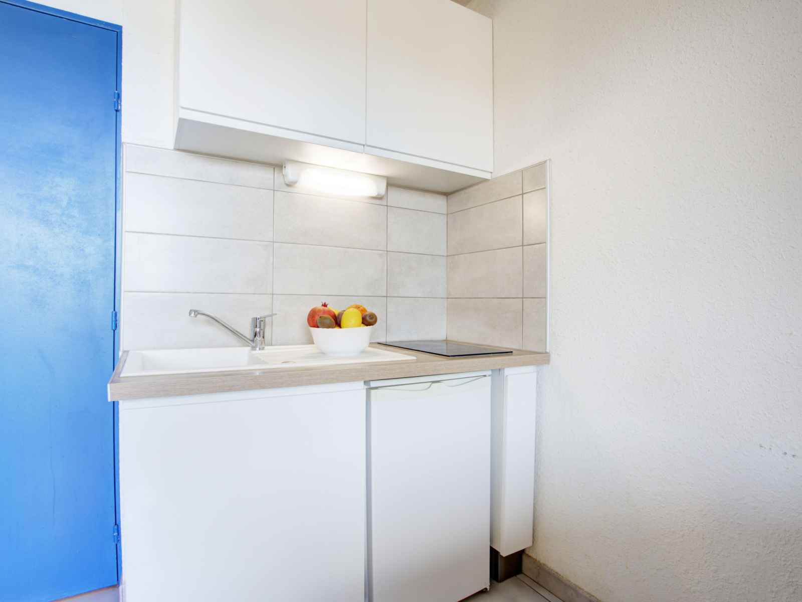 1-room studio 22 m2 on 2nd floor. practical furnishings: entrance hall with 1 x 2 bunk beds (90 cm, length 190 cm), fan. living/dining room with 1 double sofabed (1 x 130 cm, length 190 cm), tv (flat screen). exit to the balcony. kitchenette (mini-oven, oven, 2 ceramic glass hob hotplates, microwave, electric coffee machine). shower/wc. balcony 6