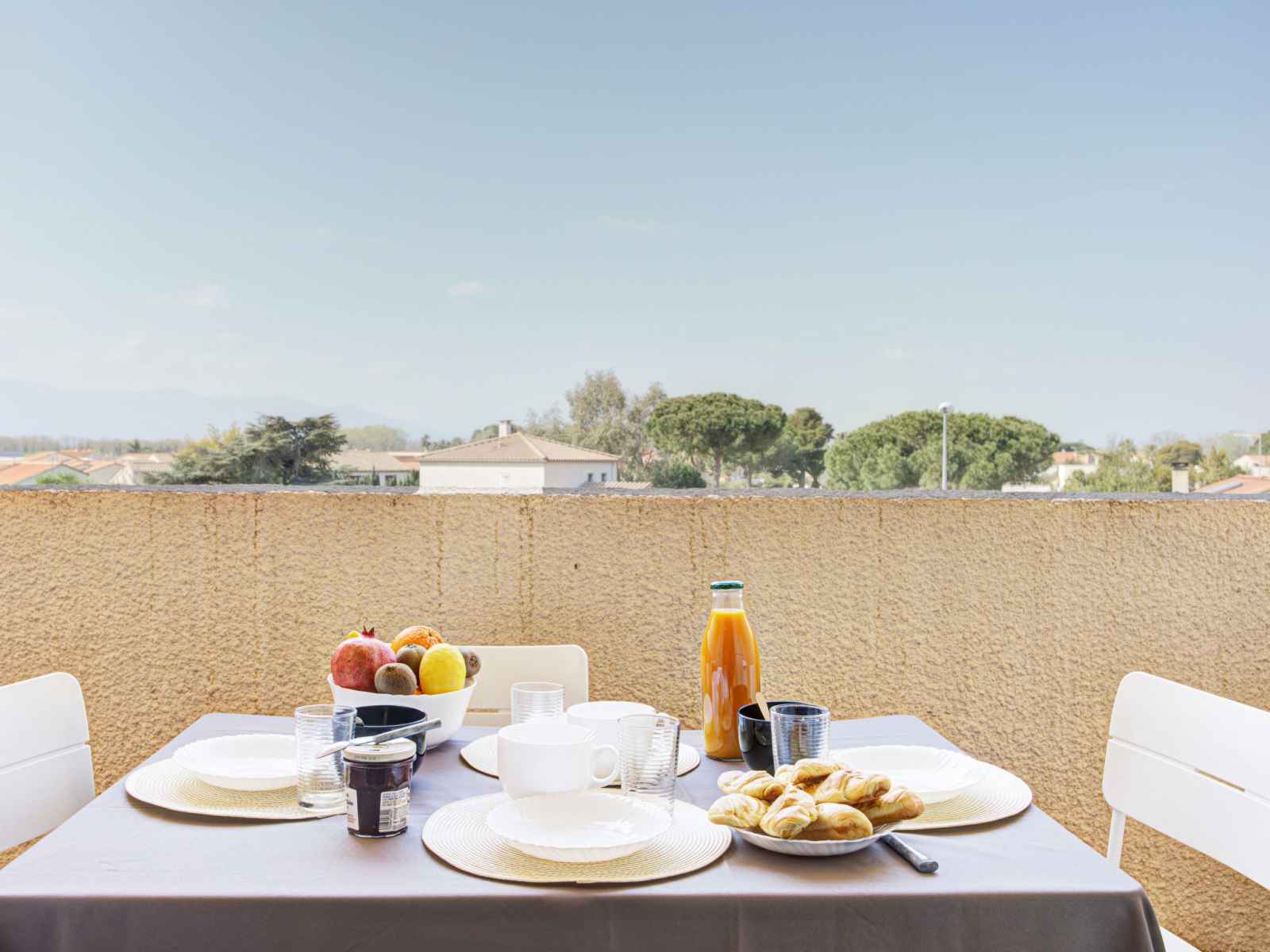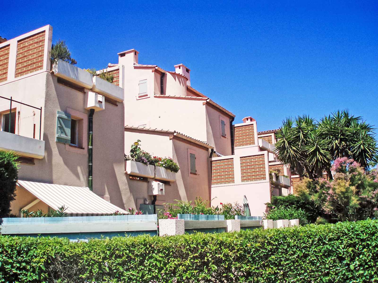 Residence "les terrasses fleuries", 3 storeys. in the centre of saint cyprien port, in a central, busy position, 750 m from the sea, from the beach, on a main road. shop 500 m, supermarket, restaurant, bar 400 m, bus stop 80 m, railway station "elne" 8 km, sandy beach "plage du port" 750 m. sports harbour 400 m, golf course (27 hole) 3.5 km,